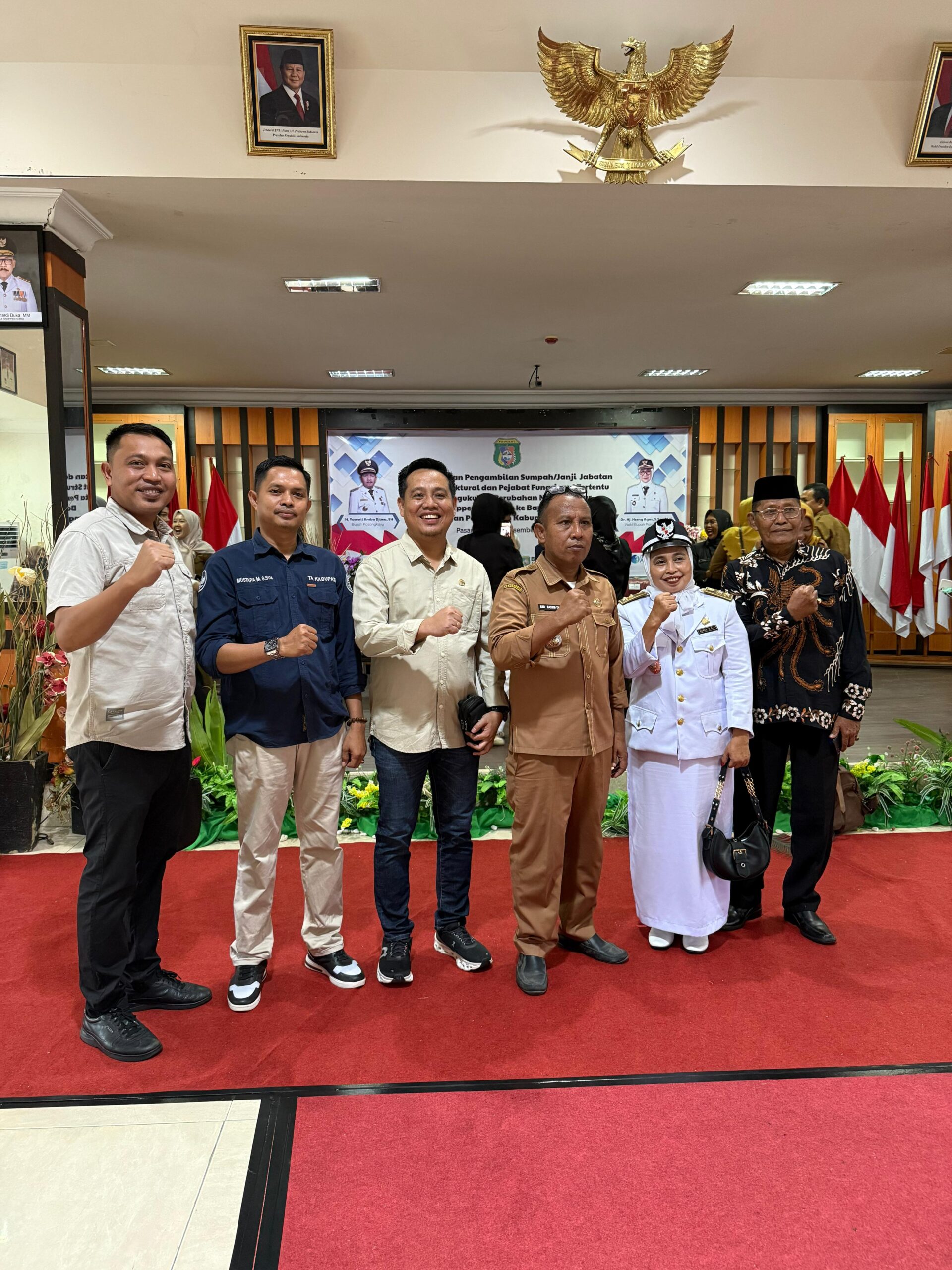 Pelantikan tersebut di hadiri oleh Sekda Pasangkayu, Dandim 1427/Pasangkayu, Perwakilan Polres Pasangkayu, Kajari Pasangkayu, kepala Inspektorat Pasangkayu, Anggota DPRD Kab. Pasangkayu, Segenap Forkopimda Pasangkayu serta Turut Pula Hadir Ketua LPM Baras dan anggota dan sejumlah masyarakat yang turut hadir menyaksikan jalannya pelantikan. (Jas)