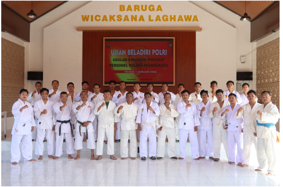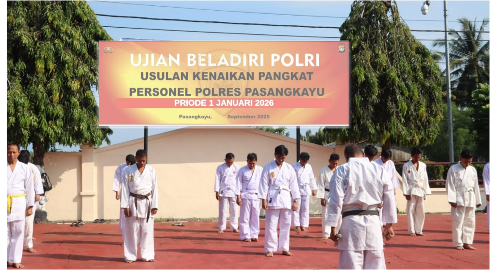 Polres Pasangkayu — melaksanakan Ujian Beladiri Polri dalam rangka Usulan Kenaikan Pangkat (UKP) Periode 1 Januari 2026, pada Sabtu (20/9/2025) pukul 08.00 WITA bertempat di Baruga Wicaksana Laghawa Polres Pasangkayu.
