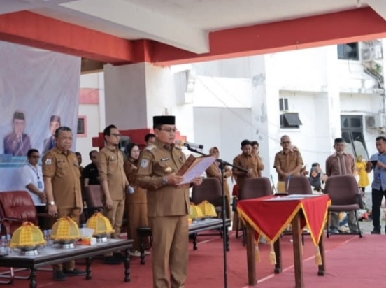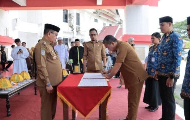 PASANGKAYU — Bupati Pasangkayu, H. Yaumil Ambo Djiwa, melantik 412 Pegawai Pemerintah dengan Perjanjian Kontrak (P3K) dalam upacara pelantikan di halaman Kantor Bupati Pasangkayu pada Selasa, 23 September 2025. Pelantikan ini dihadiri oleh Sekretaris Daerah Pasangkayu, Moh. Zain Machmoed, S.Sos., M.Si., Wakil Ketua I DPRD Pasangkayu Putu Purjaya, para Asisten I, II, dan III, serta seluruh Kepala OPD di lingkup Pemerintah Kabupaten Pasangkayu.