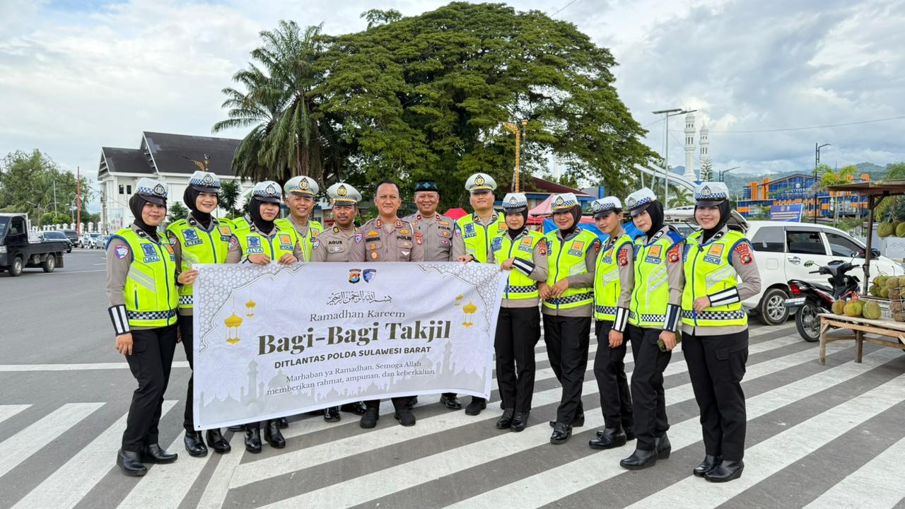 Polda Sulbar – Dalam suasana penuh berkah bulan Ramadhan, Direktorat Lalu Lintas Polda Sulawesi Barat menggabungkan kepedulian sosial dengan kampanye keselamatan berlalu lintas melalui kegiatan pembagian takjil kepada para pengendara, Jumat (20/2/2026).
