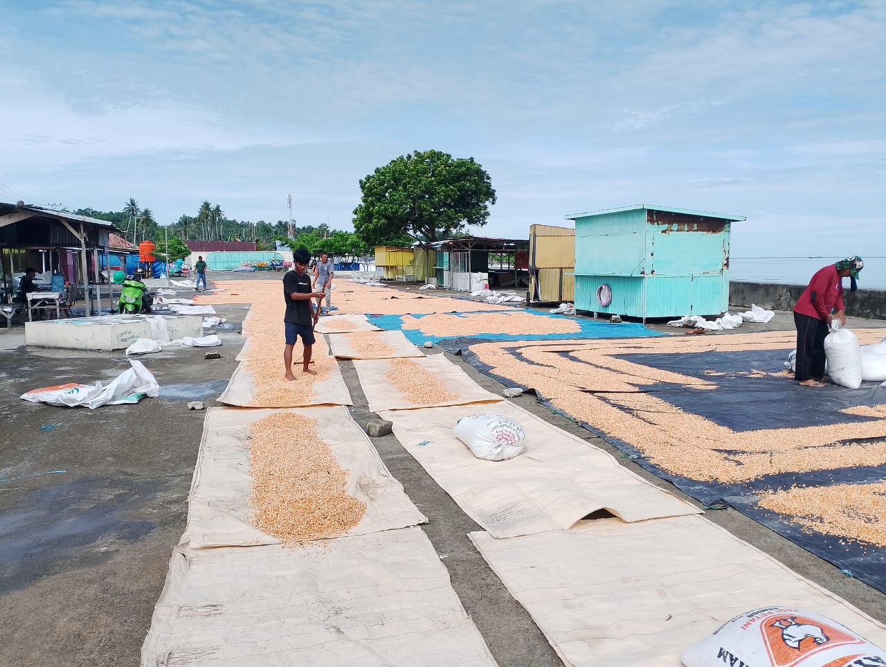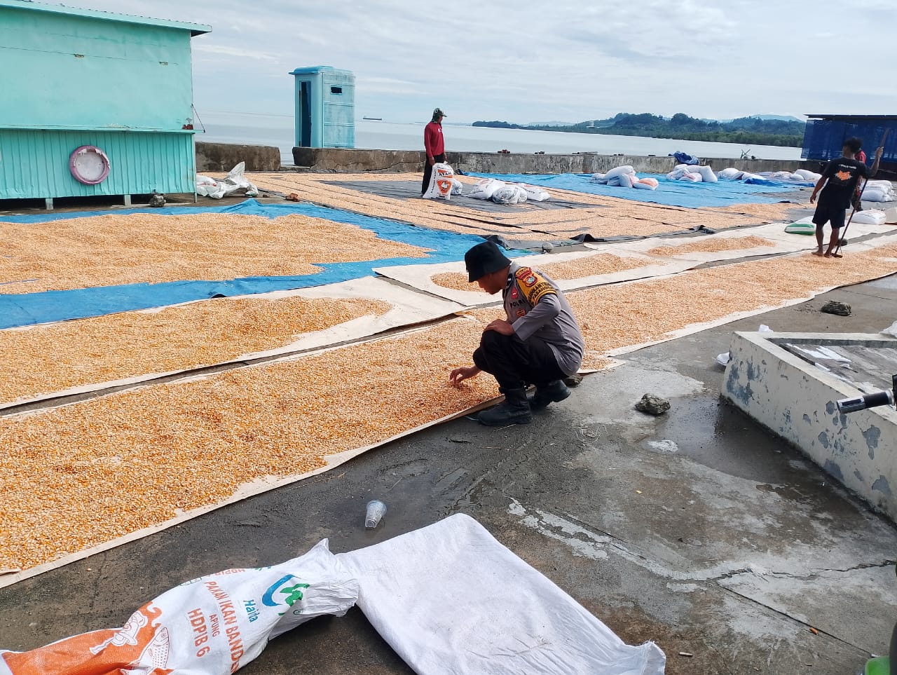 Dalam kegiatan tersebut, BRIPKA Andika Nusantara turut membantu menjemur jagung milik salah satu warga, Paisal. Selain membantu secara langsung, ia juga memberikan informasi kepada warga terkait harga pembelian jagung di Badan Urusan Logistik (Bulog) sebesar Rp6.400 per kilogram dengan kadar air 14 persen.