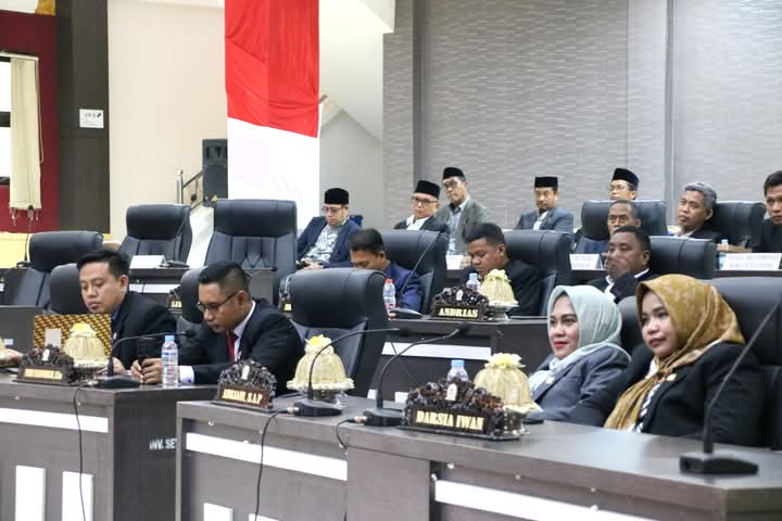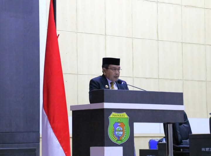 PASANGKAYU, – Bupati Pasangkayu, H. Yaumil Ambo Djiwa, S.H menghadiri rapat paripurna DPRD Kabupaten Pasangkayu yang digelar di ruang Paripurna DPRD, Jl Abdul Muiz, Kelurahan Pasangkayu, Kecamatan Pasangkayu, Kamis (14/8/2025).Rapat paripurna tersebut dipimpin langsung oleh Wakil Ketua DPRD Pasangkayu, I Putu Purjaya dan di Dampingi Wakil Ketua II H. HarimanAgenda utama rapat ini, yaitu penyampaian jawaban Bupati terhadap pandangan umum fraksi-fraksi DPRD terkait Rancangan Peraturan Daerah (Ranperda) tentang Rencana Pembangunan Jangka Menengah Daerah (RPJMD) Kabupaten Pasangkayu Tahun 2025–2029.Acara ini turut dihadiri Ketua DPRD, para wakil ketua, seluruh anggota DPRD, Forum Koordinasi Pimpinan Daerah (Forkopimda), pejabat eselon II dan III lingkup Pemerintah Kabupaten Pasangkayu, perwakilan pers, serta tamu undangan lainnya.Wakil Ketua DPRD Pasangkayu, I Putu Purjaya, dalam sambutannya menyampaikan apresiasi kepada seluruh fraksi yang telah menyampaikan pandangan umum secara konstruktif.