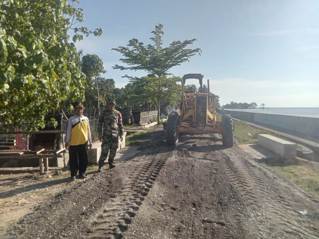 Ditempat yang sama, Babinsa Desa Batuoge Koptu Ruslan, turut mengawasi dan menyaksikan pekerjaan jalan wisata pantai Batuoge,