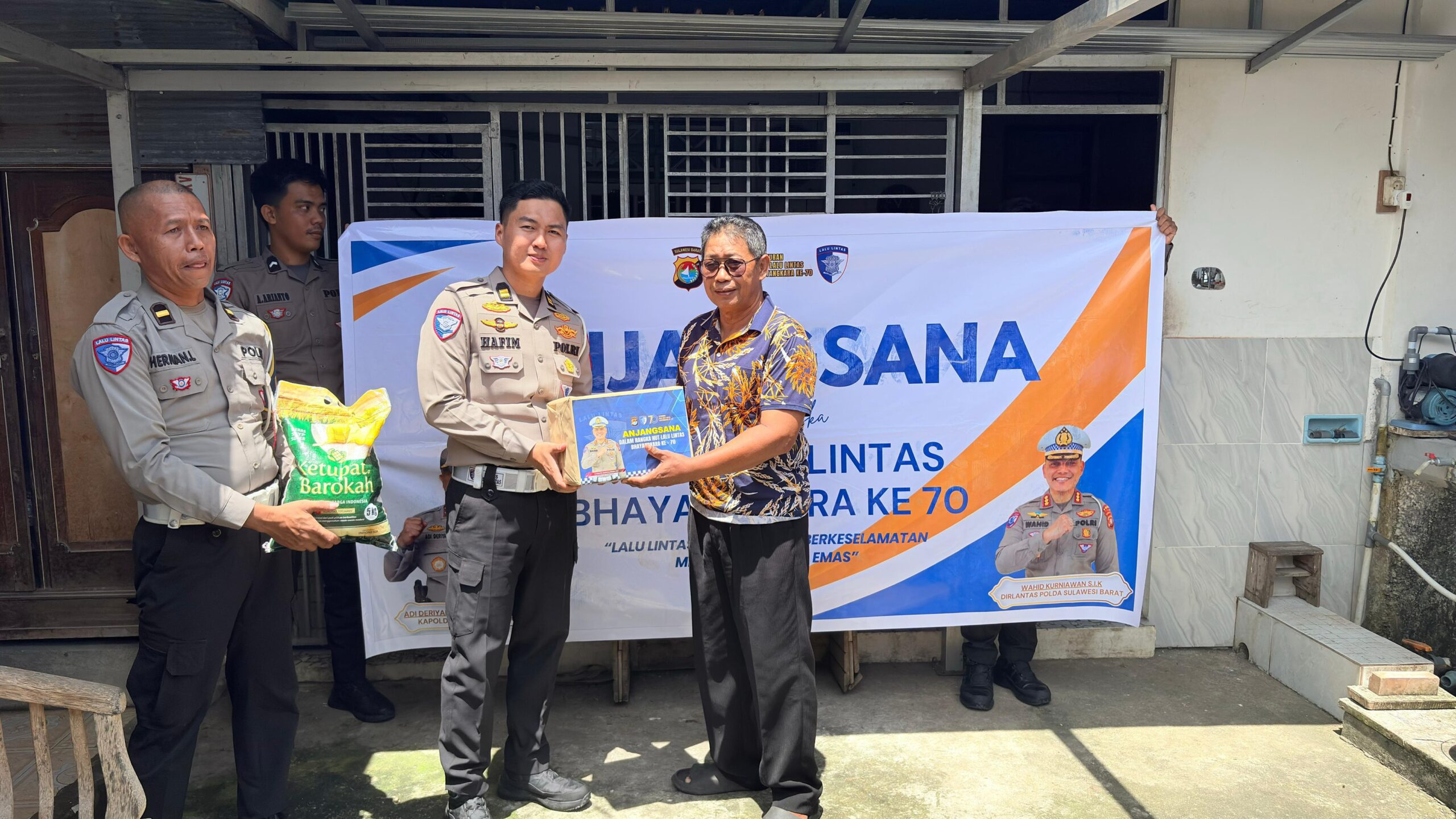 Polda Sulbar – Menjelang puncak perayaan Hari Ulang Tahun Lalu Lintas ke-70, Direktorat Lalu Lintas (Ditlantas) Polda Sulawesi Barat menggelar kegiatan anjangsana ke para purnawirawan Polri di Mamuju, Senin (15/9/25).