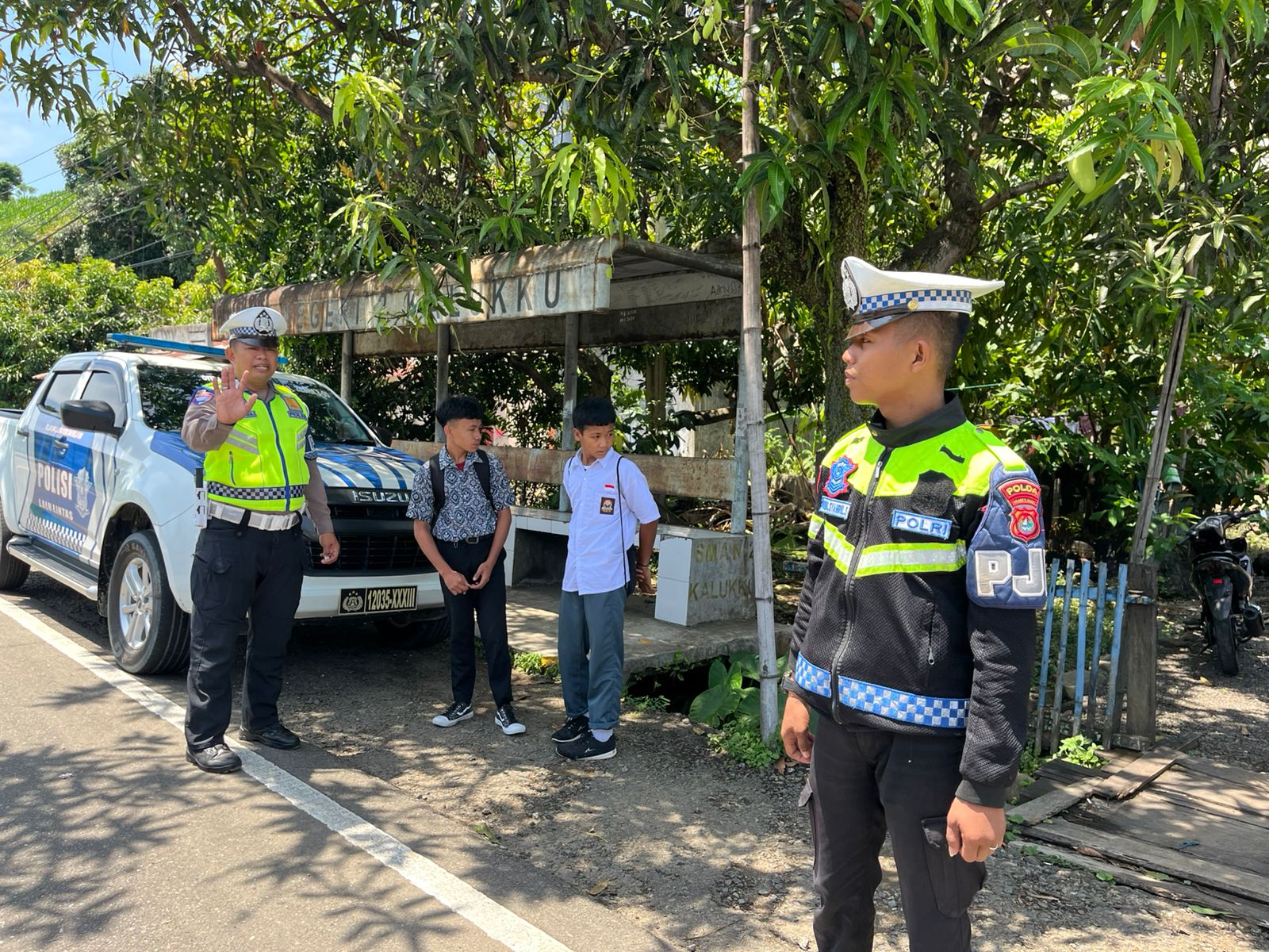 Kehadiran petugas di lokasi tidak hanya bertujuan untuk mengatur arus kendaraan agar lancar dan aman, tetapi juga sebagai sarana edukasi langsung kepada para pelajar mengenai pentingnya mematuhi rambu lalu lintas dan tertib berkendara.