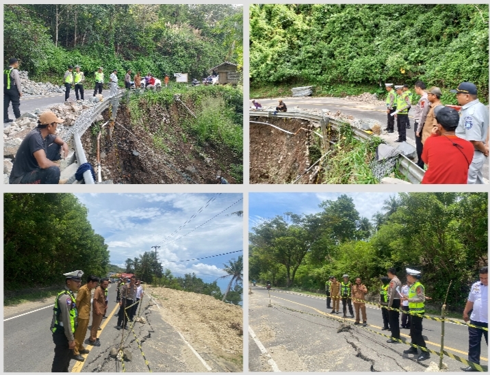 – Kecamatan Andreapi, Badan jalan mengalami longsor akibat aliran air di bawah permukaan jalan dan tidak dilengkapi guardrail untuk menjaga keamanan pengguna.