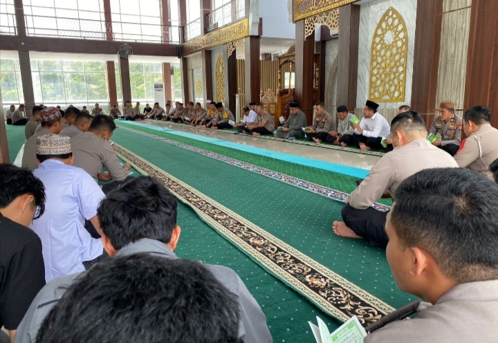 Suasana khusyu juga nampak saat Kapolda dan para jamaah yang hadir melantunkan bacaan Surah Yasin dan dilanjutkan dengan doa bersama untuk keamanan dan kemajuan Sulbar.