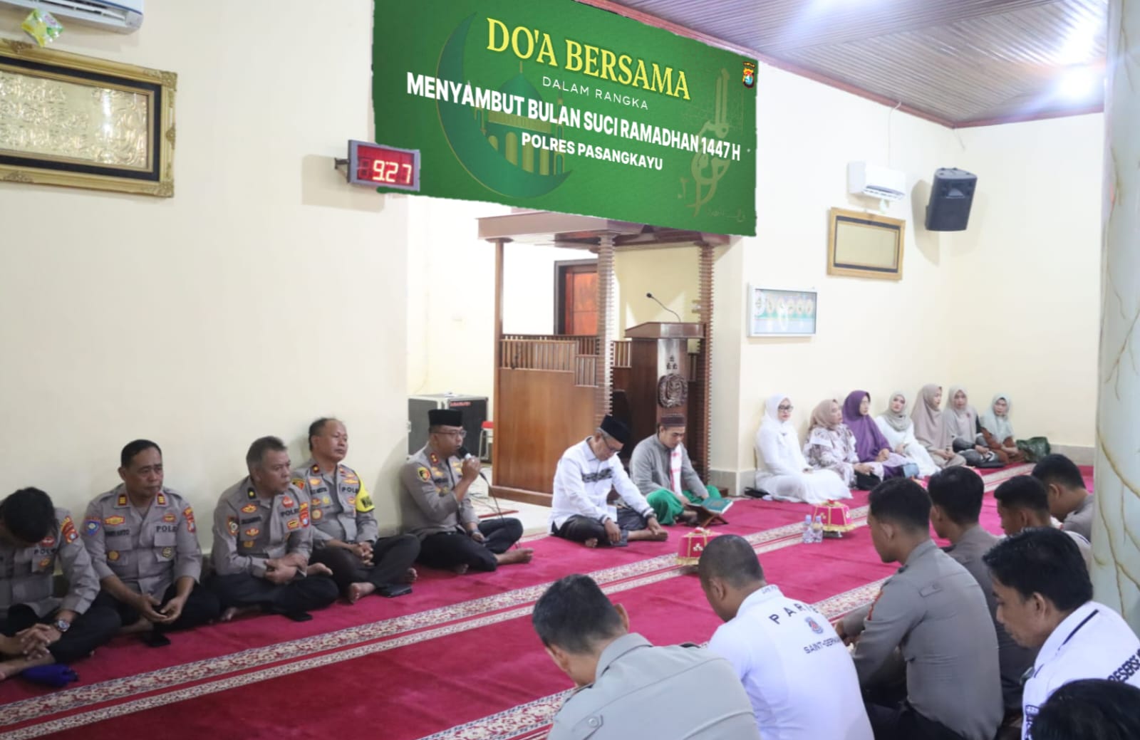 Polres Pasangkayu – Dalam rangka menyambut datangnya Bulan Suci Ramadhan 1447 Hijriah/2026 Masehi, Polres Pasangkayu menggelar kegiatan Doa Bersama yang dilaksanakan pada Rabu, 10 Februari 2026 pukul 09.30 Wita, bertempat di Mesjid Assyfa Polres Pasangkayu.