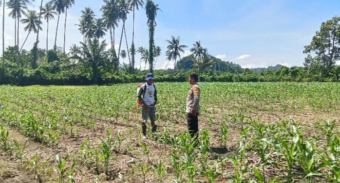 Dalam kesempatan tersebut, Bripka Asdar melakukan pengecekan langsung di lahan pertanian seluas kurang lebih 1 hektare milik Sdr. Adam, yang merupakan anggota aktif Kelompok Tani Jagung “Samaturu”.