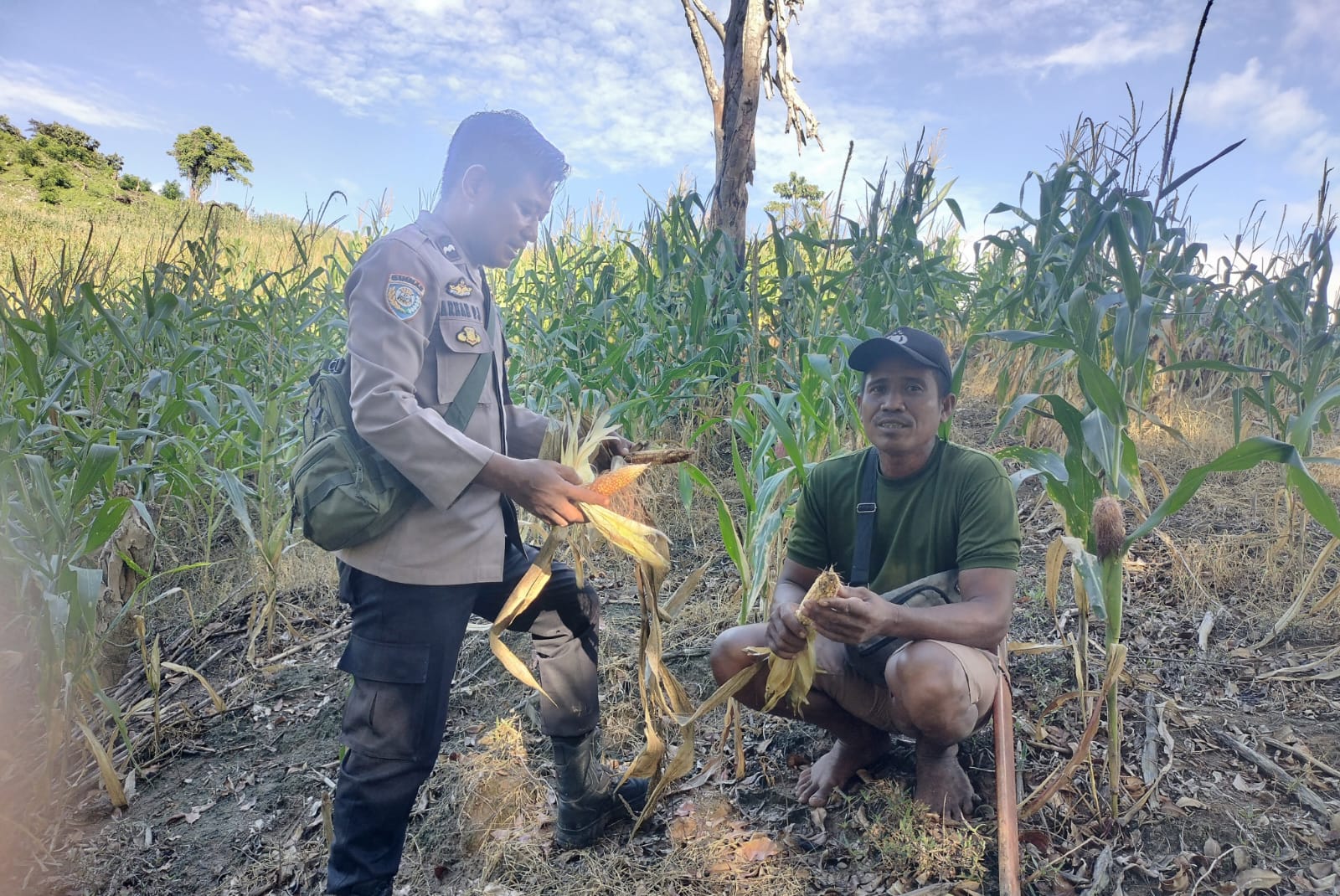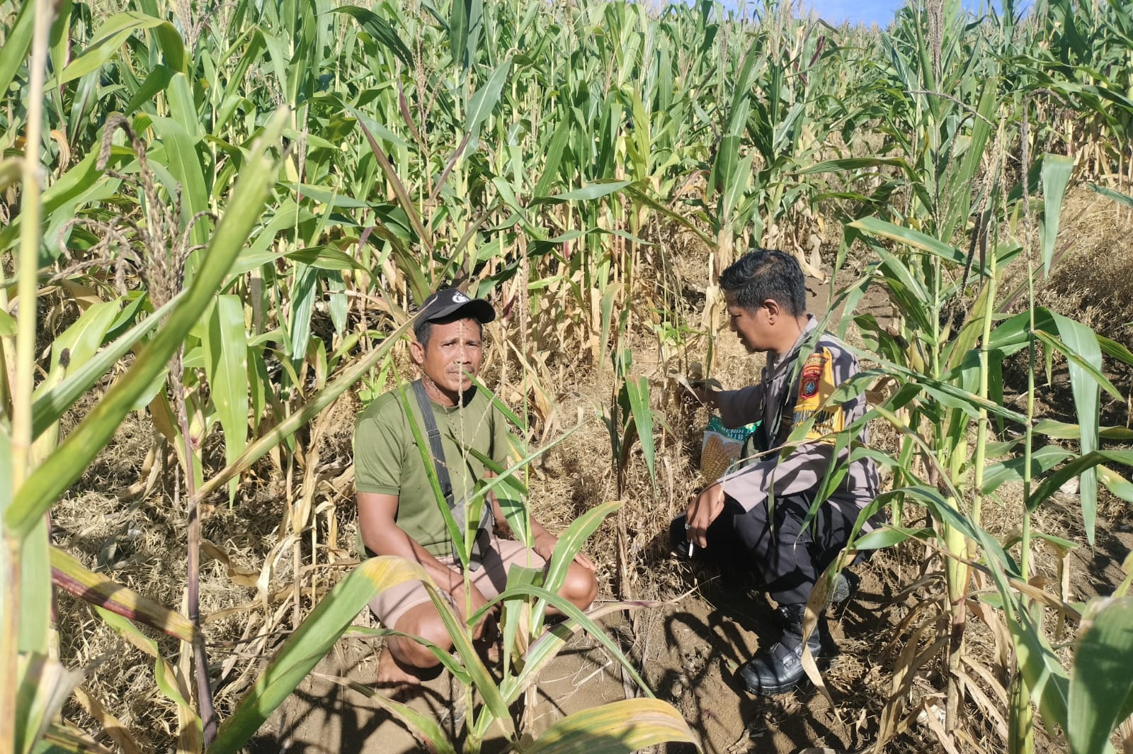 Dukung Ketahanan Pangan, Polsek Bambalamotu Cek Lahan Jagung Petani yang Gagal Panen di Kasoloang