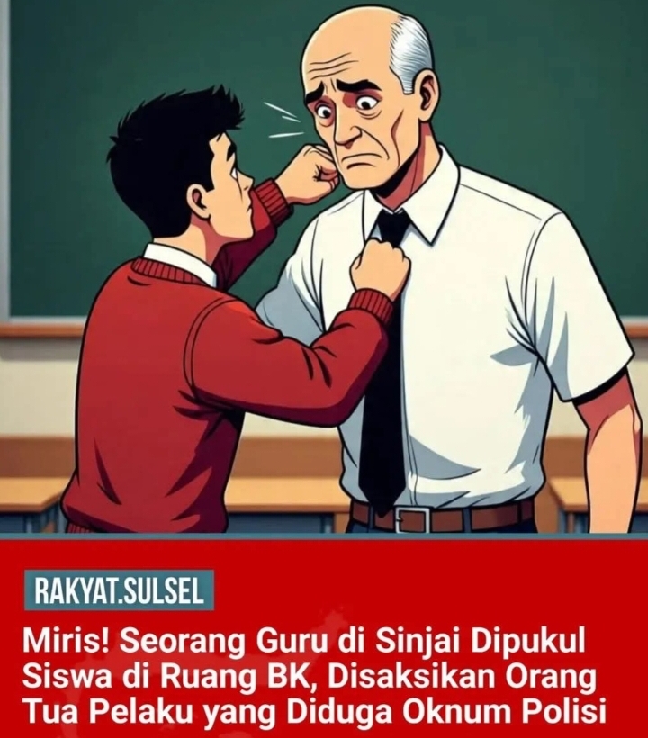 SULSEL — Kabupaten Sinjai kembali diguncang oleh kasus kekerasan di lingkungan sekolah. Seorang Wakil Kepala Sekolah (Wakasek) Bidang Kesiswaan di SMAN 1 Sinjai, Mauluddin, menjadi korban penganiayaan yang dilakukan oleh salah satu siswanya, MF (18), pada Selasa, 16 September 2025. Insiden miris ini terjadi di ruang Bimbingan Konseling (BK) dan disaksikan langsung oleh ayah MF, yang diduga merupakan seorang anggota Polres Sinjai.