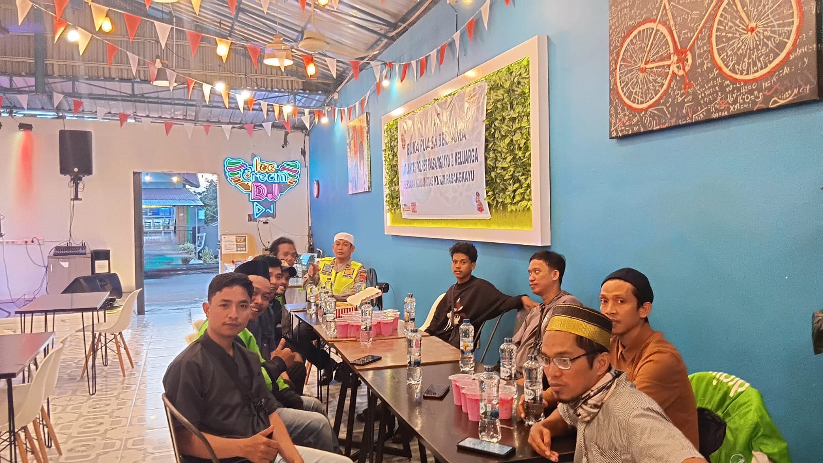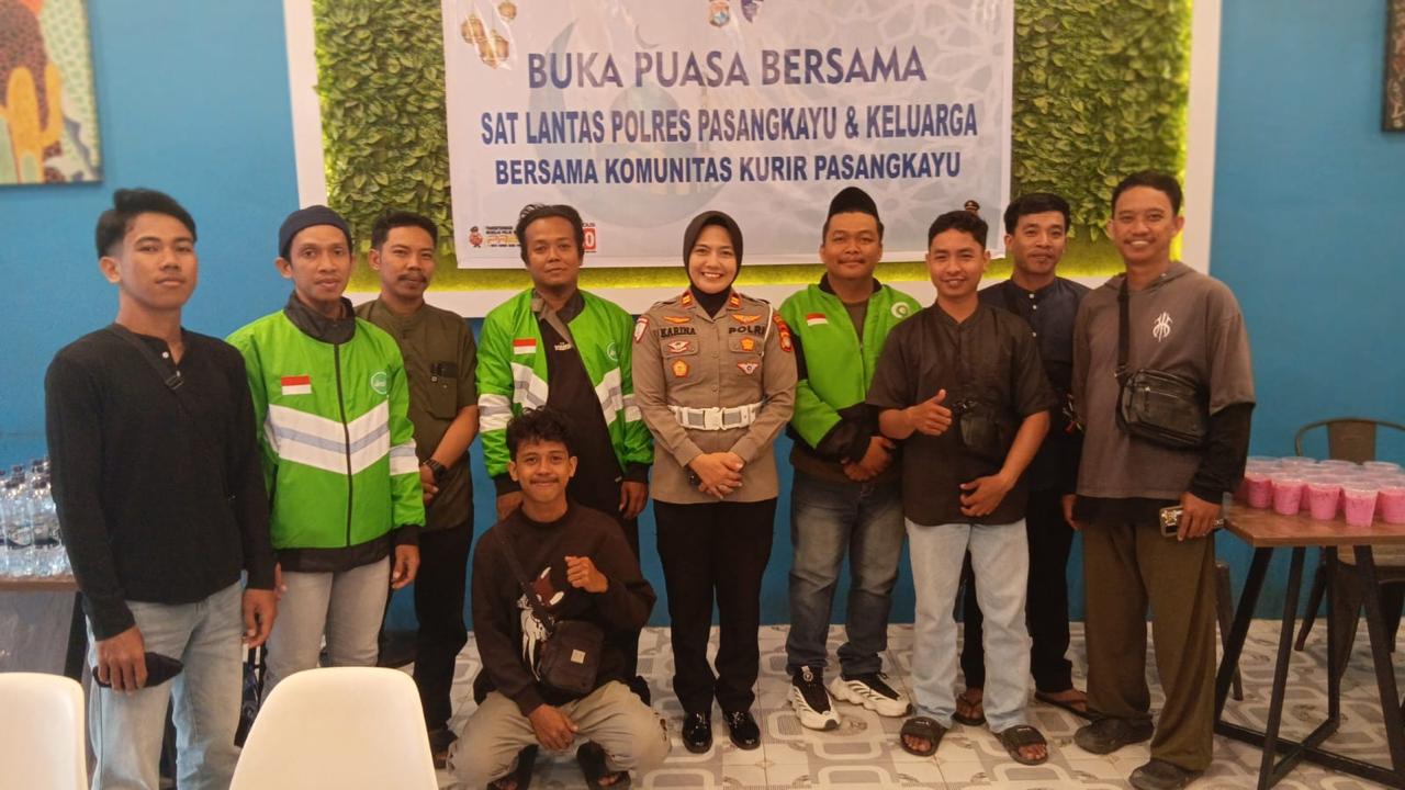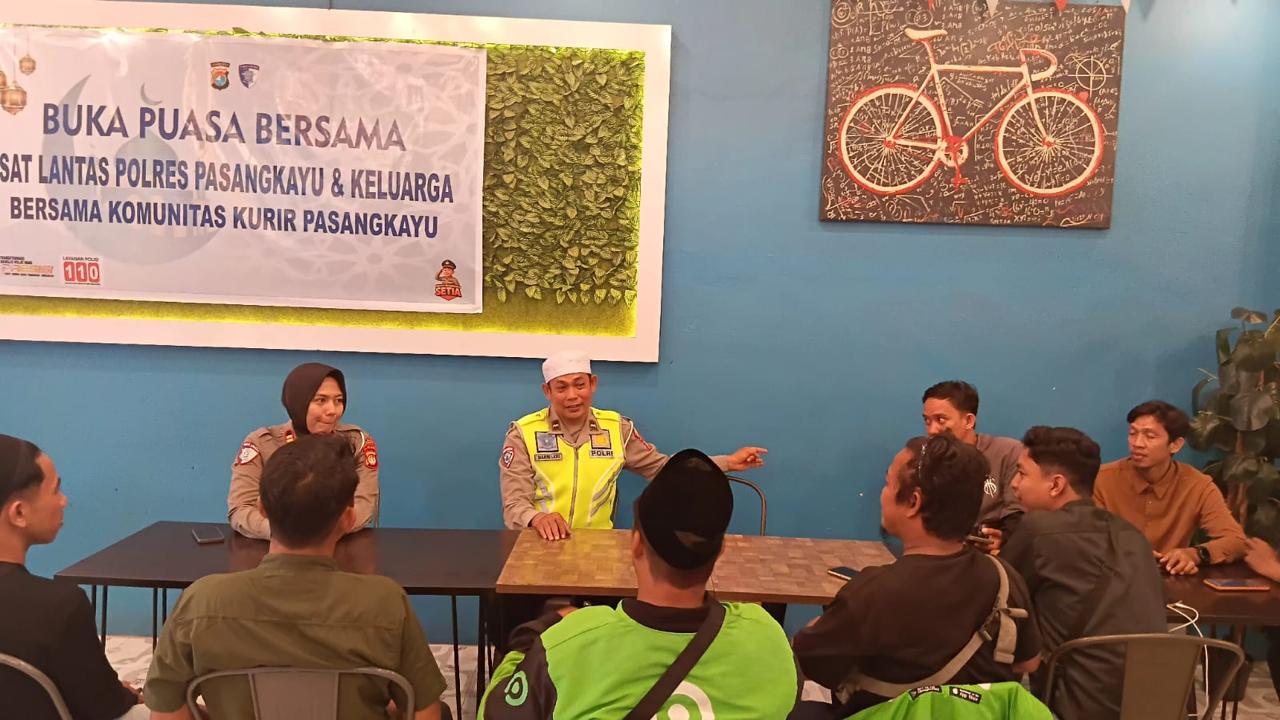 Polres Pasangkayu – Suasana penuh kehangatan dan kekeluargaan terasa begitu kental saat Sat Lantas Polres Pasangkayu menggelar buka puasa bersama Komunitas Kurir Pasangkayu pada Jumat (27/2/2026) di Cafe Ice Cream Dj, Jalan Fatmawati, Kabupaten Pasangkayu.Kegiatan sederhana namun sarat makna ini menjadi momentum mempererat silaturahmi antara aparat kepolisian dan para kurir yang setiap hari berjibaku di jalan demi memenuhi kebutuhan masyarakat. Di tengah kesibukan dan tanggung jawab masing-masing, kebersamaan tersebut menjadi ruang untuk saling memahami, saling menghargai, dan saling menguatkan.Kapolres Pasangkayu AKBP Joko Kusumadinata S.H, S.I.K, melalui Kasat Lantas IPTU Karina Rara Ayu S.H, M.H, menyampaikan bahwa kegiatan ini bukan sekadar berbuka puasa bersama, melainkan wujud kepedulian dan kedekatan Polri dengan seluruh elemen masyarakat, termasuk para kurir yang memiliki peran penting dalam mendukung aktivitas perekonomian daerah.
