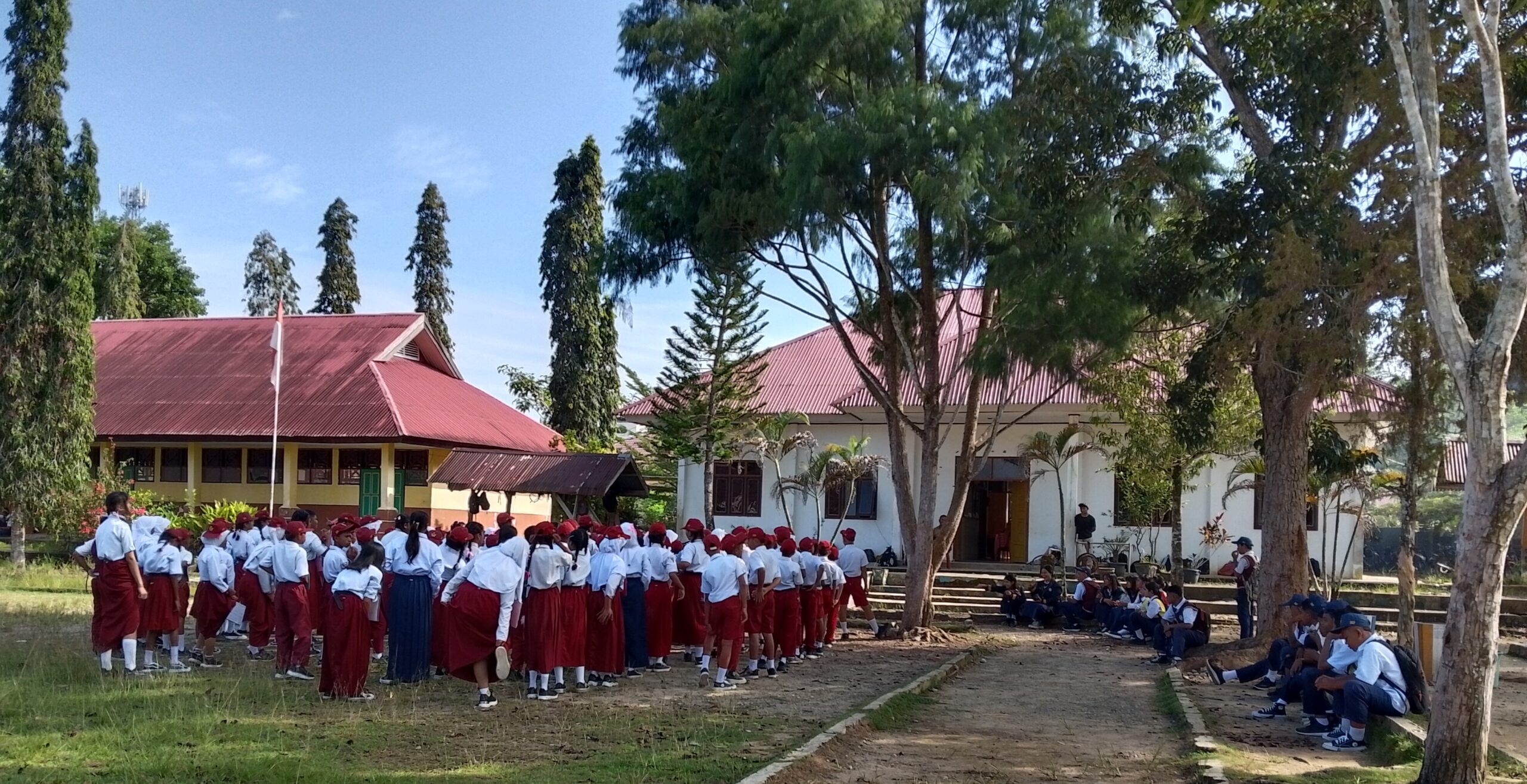PASANGKAYU, – Hari Pertama masuk sekolah, pasca libur panjang, Kepsek SMPN 01 Bulutaba.Dra.Indo Iya, M.Pd, Menggelar Masa pengenalan Lingkungan Sekolah (MPLS) tepatnya di lingkungan sekolah SMPN 01 Bulutaba, Desa Lilimori, Kec. Bulutaba, Kab.Pasangkayu, Prov.Sulawesi Barat. Senin (14/7/2025).