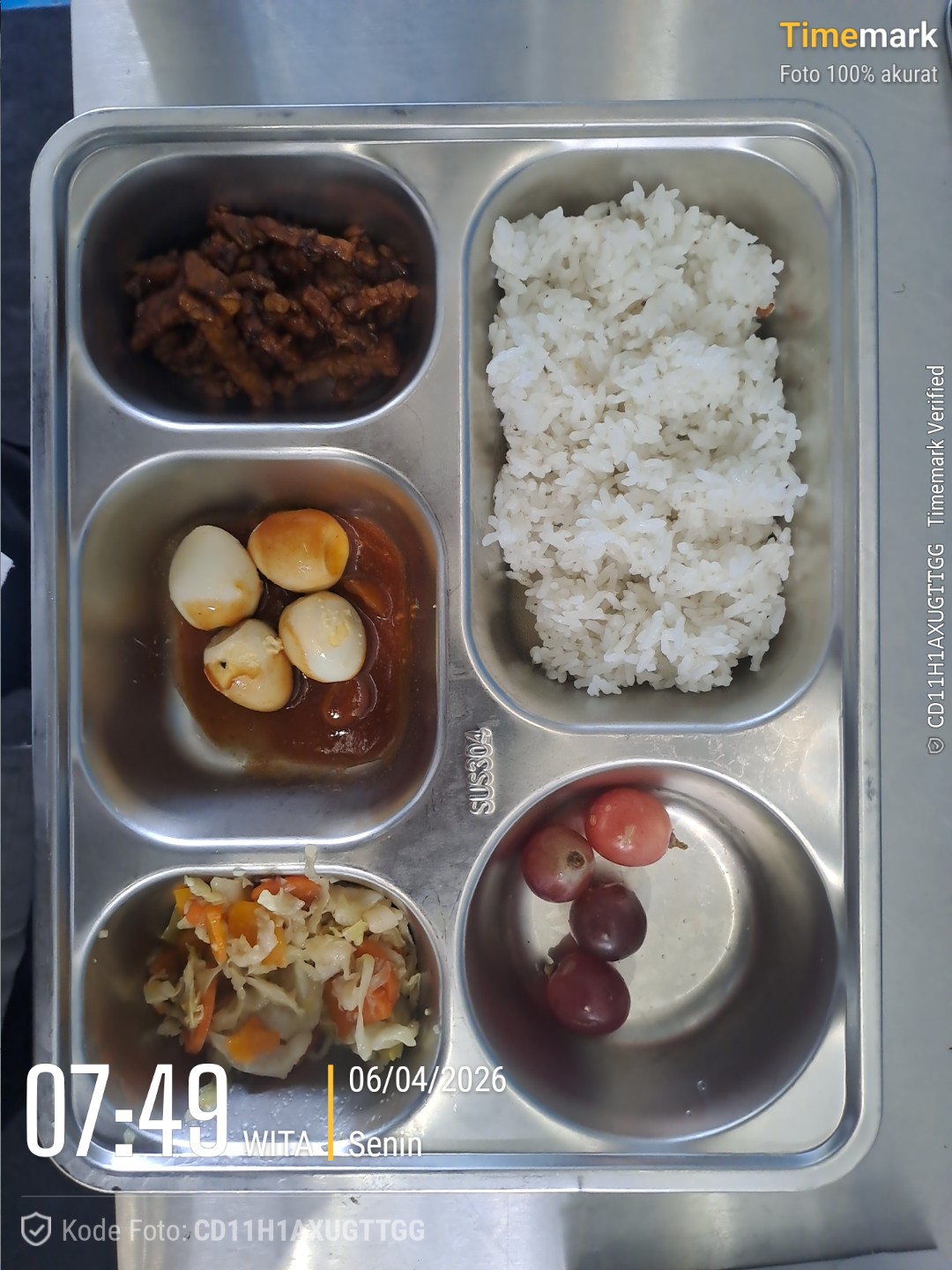 “Kami memeriksa lima jenis menu utama, mulai dari nasi putih, tempe kecap, telur puyuh, sayur kol & wortel, hingga buah anggur,” ujarnya.