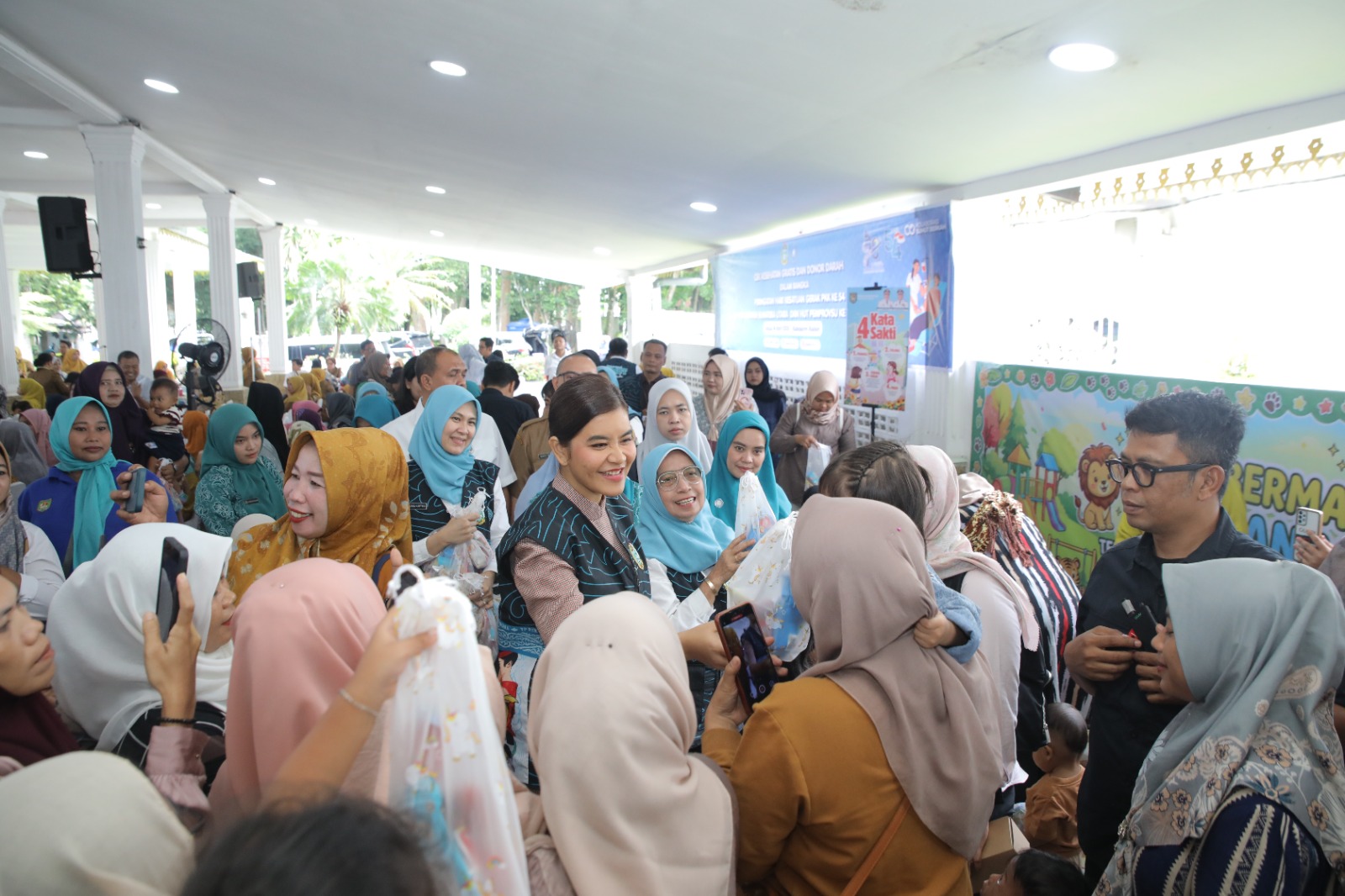 Acara ini menghadirkan pelayanan kesehatan gratis yang sangat dinantikan masyarakat, mulai dari pemeriksaan kesehatan umum, EKG, donor darah, skrining kesehatan untuk usia produktif, lansia, anak-anak, hingga balita, termasuk layanan pemeriksaan gigi dan mulut.