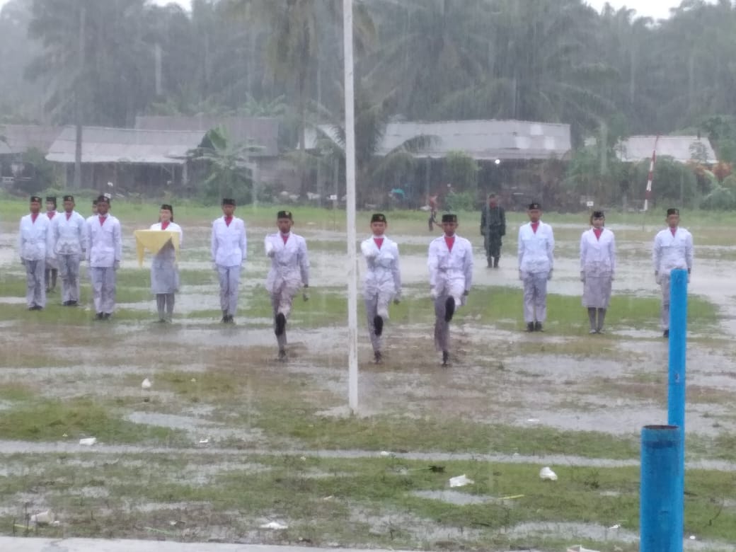 Hujan Tak Menghentikan Semangat, Upacara Penurunan Bendera di Lelejae Berlangsung Khidmat