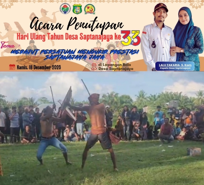 Titik puncak acara tercapai ketika pertunjukan Peresean Lombok dimulai. Petarung dari Baras 4, Baras 5, dan Baras 6 bersaing hebat melawan petarung lokal Desa Saptanajaya. Gerakan cepat, teknik bertarung yang khas, dan semangat kedua tim membuat hadirin terpesona dan seringkali melontarkan sorakan meriah. Pertunjukan ini bukan hanya hiburan, tapi juga upaya melestarikan budaya lokal yang kaya.
