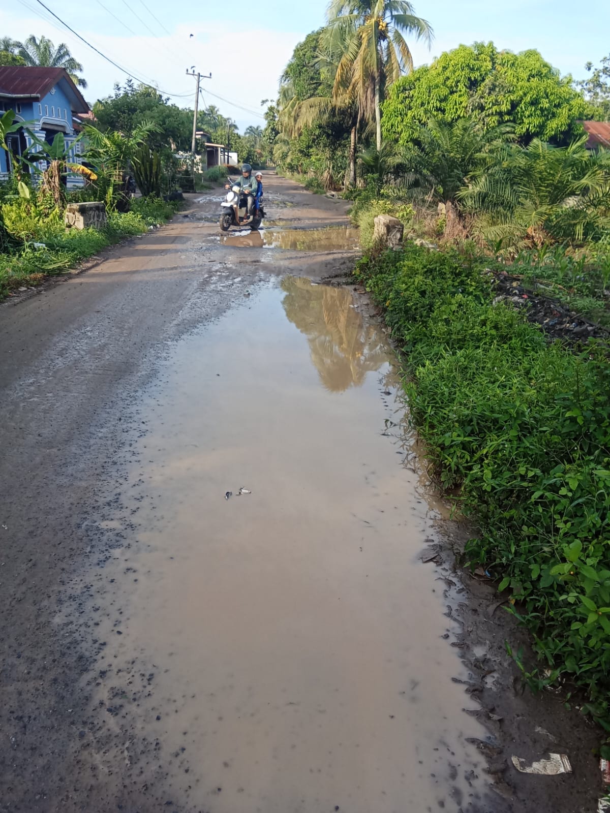 Banyak ditemukan lubang besar dan genangan air, terutama saat musim hujan. Hal ini sangat mengganggu akses warga menuju sekolah, pasar, dan fasilitas umum lainnya.