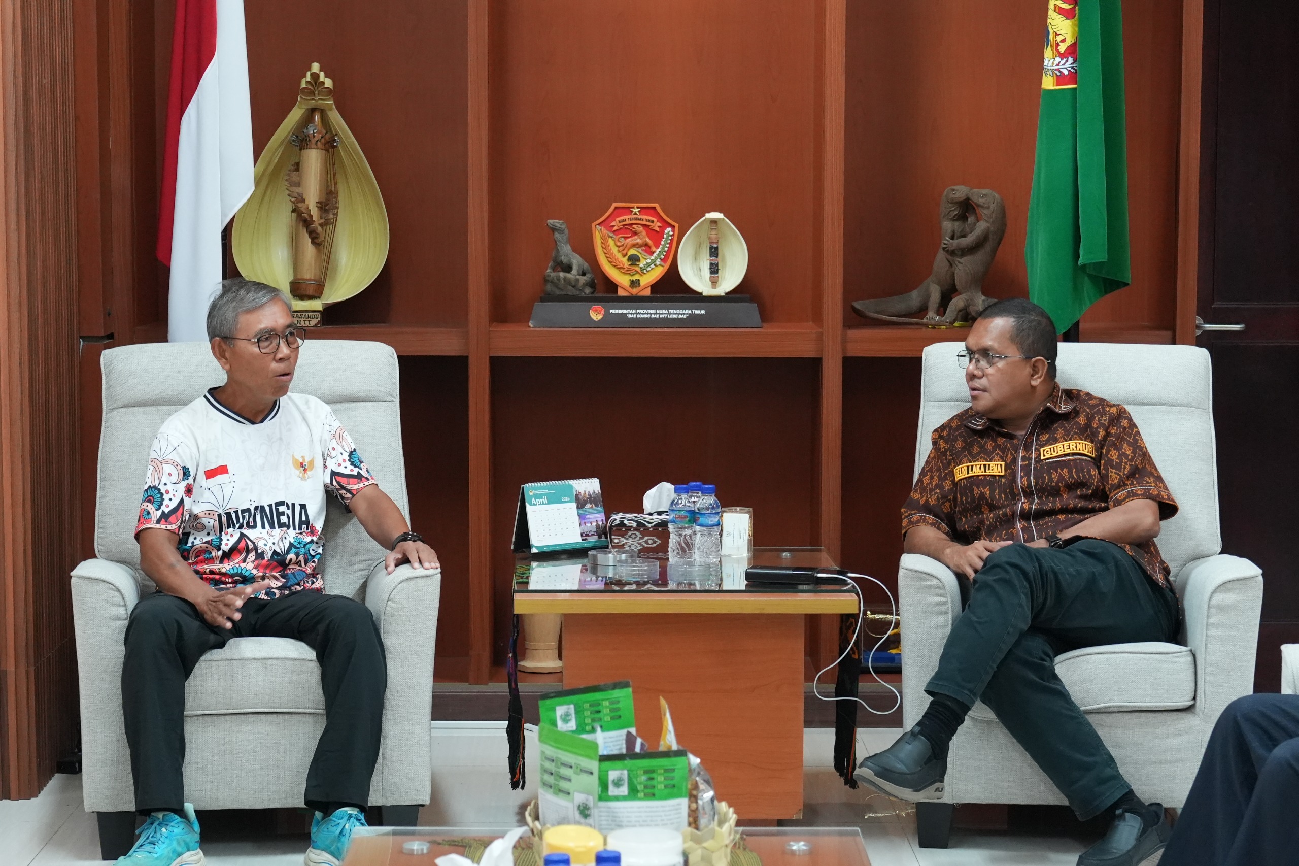 KUPANG – Gubernur Nusa Tenggara Timur (NTT), Emanuel Melkiades Laka Lena, menerima audiensi khusus dari aktivis sosial Frans Lumentut yang baru saja menyelesaikan misi berjalan kaki sejauh 945 kilometer melintasi enam pulau di NTT selama 46 hari.