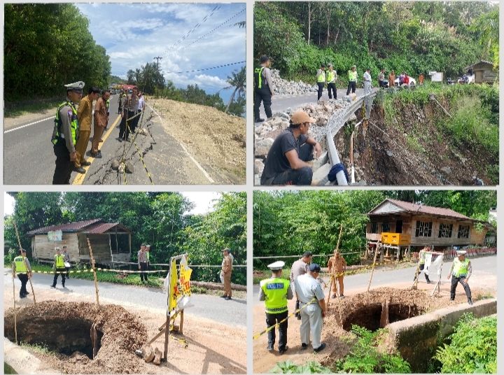 – Kecamatan Andreapi, Badan jalan mengalami longsor akibat aliran air di bawah permukaan jalan dan tidak dilengkapi guardrail untuk menjaga keamanan pengguna.