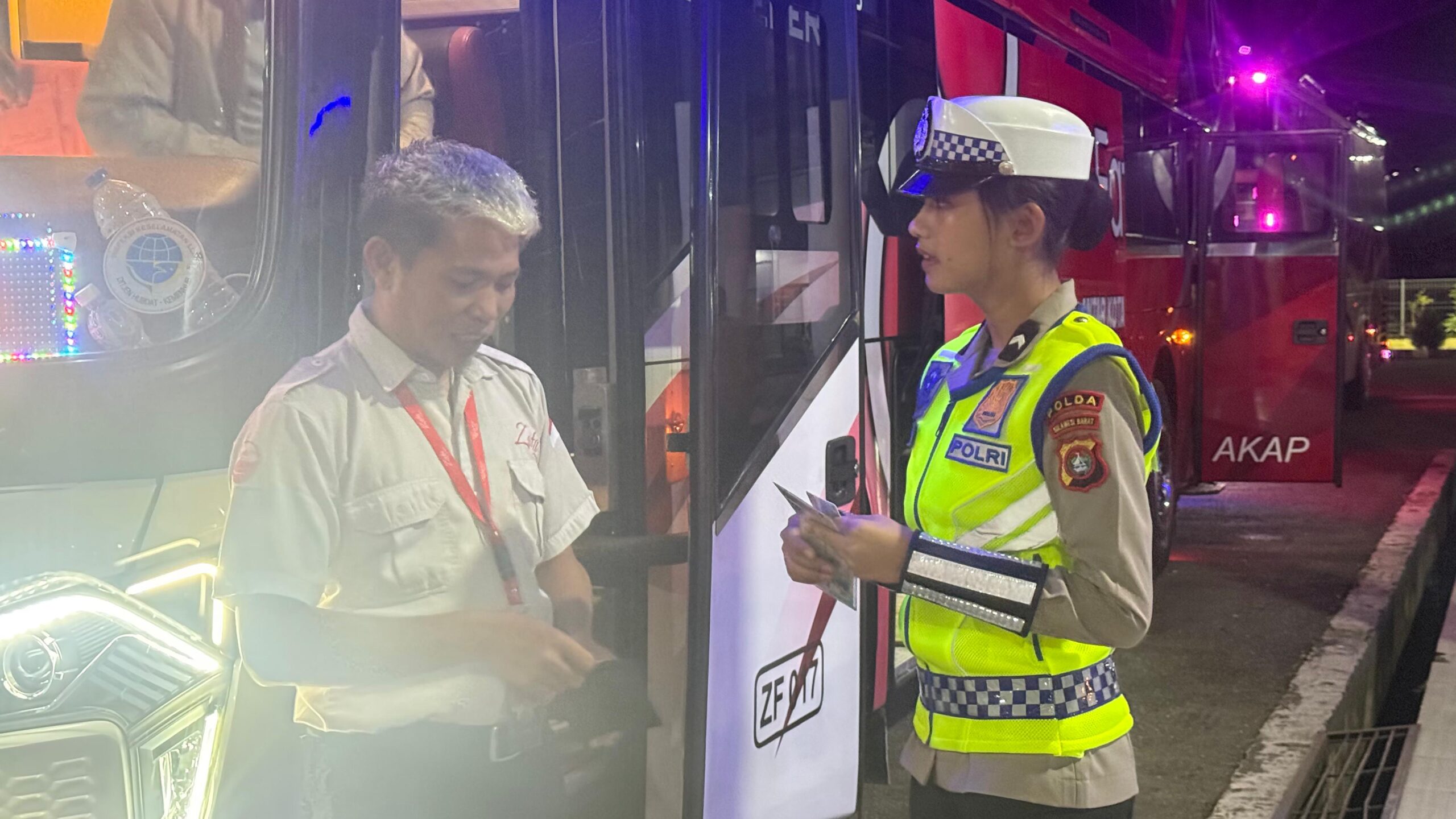 Polda Sulbar – Menjelang lonjakan penumpang saat libur Natal dan Tahun Baru (Nataru), Direktorat Lalu Lintas Polda Sulawesi Barat bekerjasama dengan dinas perhubungan terus meningkatkan pengawasan terhadap armada bus antar kota di Terminal Regional Mamuju, Kamis (11/12/25).