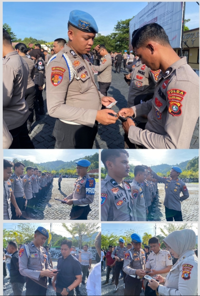 Polda Sulbar – Sebagai upaya menjaga disiplin personel, Bidpropam Polda Sulbar kembali melakukan pengecekan mendadak terhadap seluruh personel usai apel pagi rutin di lapangan Tribrata Mapolda, Selasa (10/3/26). Kegiatan ini fokus pada kelengkapan dokumen data diri dan sikap tampang personel serta pengawasan penggunaan aplikasi Judi Online (Judol).