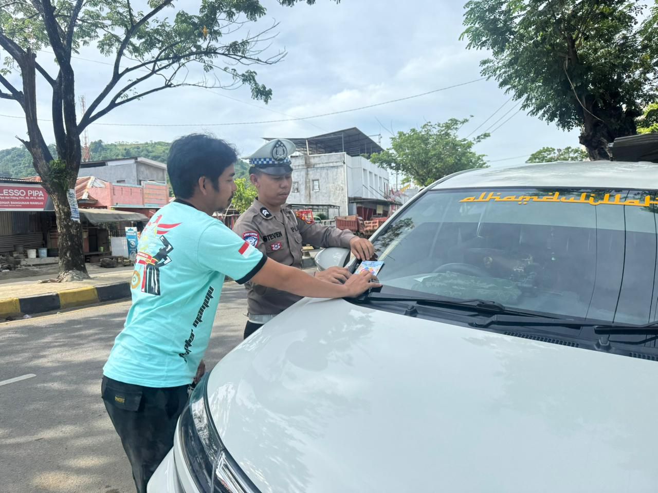 Kampanye Keselamatan, Subdit Kamsel Polda Sulbar Bagikan Stiker dan Snack