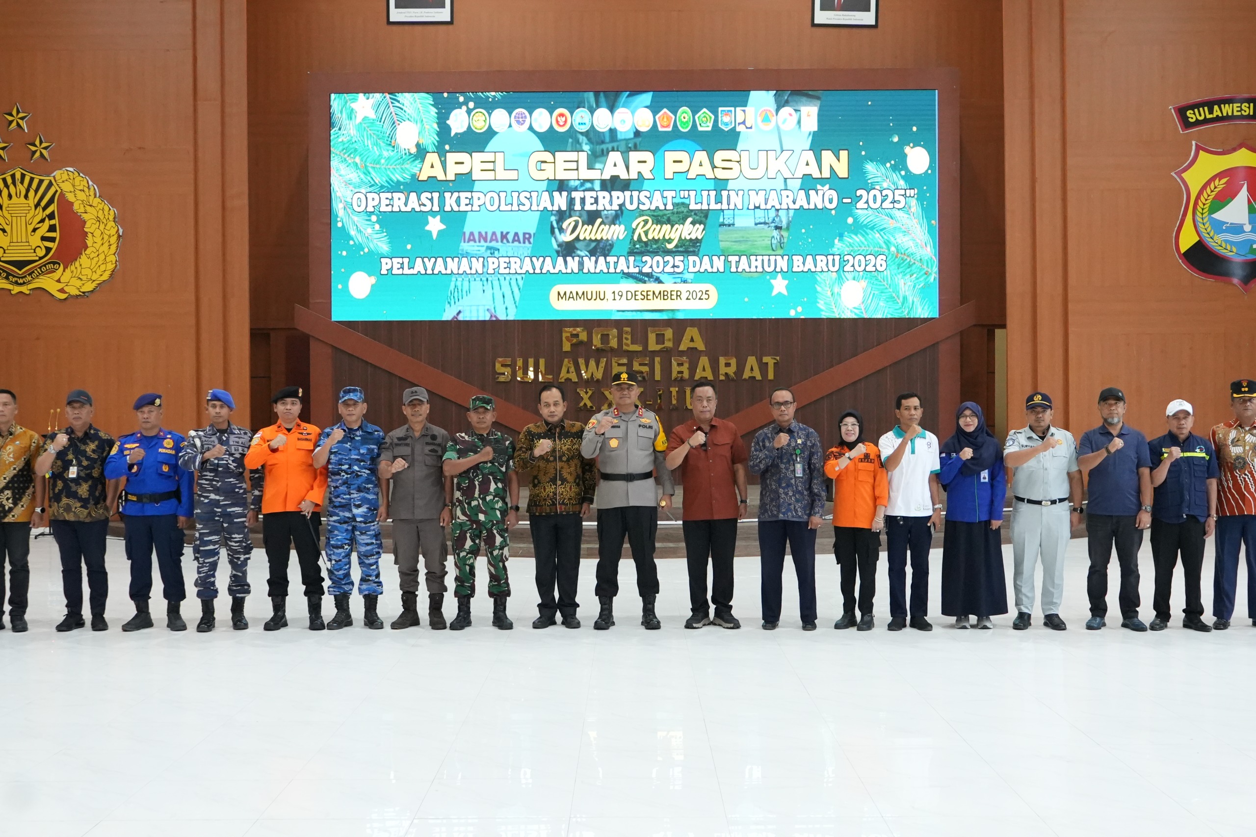Polda Sulbar – Polda Sulbar menggelar apel gelar pasukan Operasi Lilin 2025 di Aula Marannu Mapolda, sebagai tanda kesiapan pelayanan Natal dan Tahun Baru (Nataru) yang menyeluruh di Sulawesi Barat, Jumat (19/12/25) di Aula Marannu Mapolda.