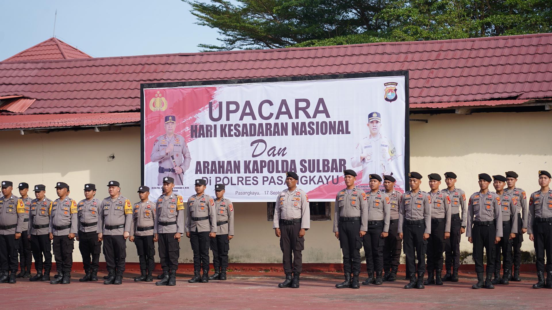 “Hari Kesadaran Nasional ini menjadi momentum bagi kita untuk merefleksikan kembali tugas dan tanggung jawab kita sebagai anggota Polri. Kita harus terus berupaya meningkatkan kualitas diri, baik dalam hal profesionalitas maupun integritas, agar dapat memberikan pelayanan terbaik kepada masyarakat,” ujar Kapolda Sulbar.Upacara HKN di Polres Pasangkayu diikuti oleh seluruh personel Polres Pasangkayu, termasuk para perwira, bintara, dan ASN. Dimana pelaksanaan upacara berlangsung khidmat dan penuh semangat, menunjukkan tekad dan komitmen seluruh personel untuk menjalankan tugas dengan sebaik-baiknya.