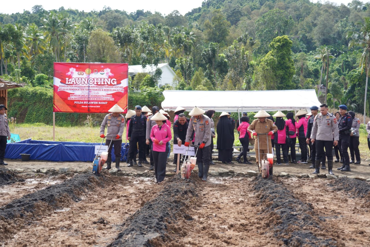 MAMUJU, SULBAR – Sebagai upaya strategis untuk memperkuat ketahanan pangan dan meningkatkan gizi masyarakat Sulawesi Barat, Kepolisian Daerah (Polda) Sulbar meluncurkan Program Pekarangan Pangan Lestari. Peluncuran yang berlangsung di lahan pekarangan pangan lestari Joglo Polda Sulbar ini dipimpin langsung oleh Kapolda Sulbar, Irjen Pol. Adang Ginanjar, didampingi Ketua Bhayangkari, Ny. Miranti Adang, serta dihadiri oleh para pejabat utama Polda Sulbar dan pengurus Bhayangkari.