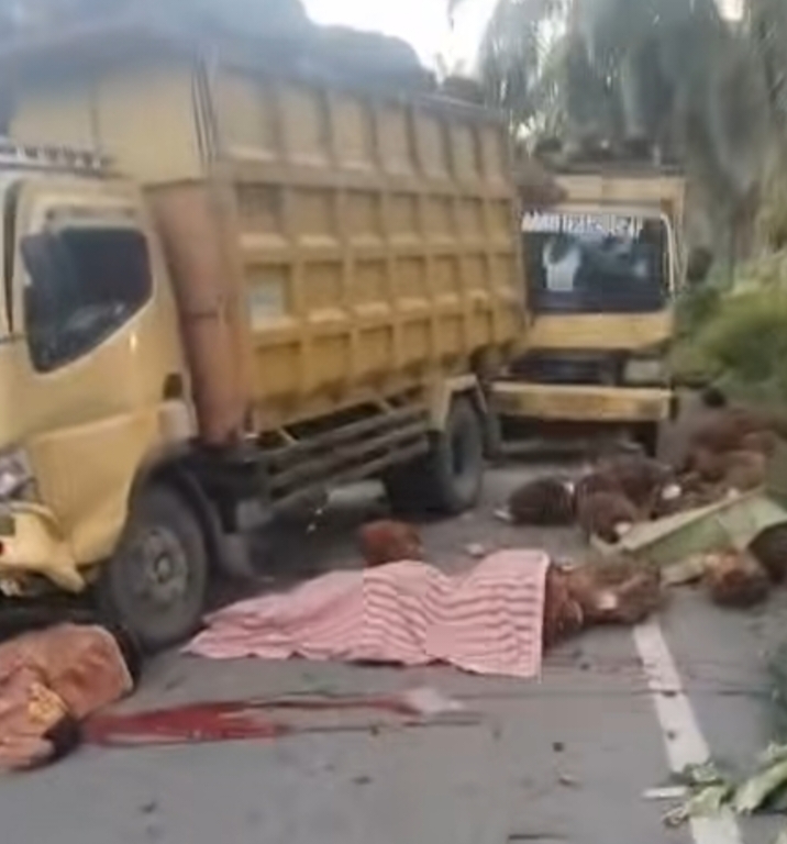 Menurut Info, bahwa saat itu pula Para sopir dan seorang helper sedang berada di depan salah satu mobil truck yang sementara parkir, namun naas tak terduga, tiba-tiba dari arah utara, satu unit mobil tronton merk Hino Plat nomor DN 8813 NU yang di kemudikan oleh seorang lelaki bernama Adrian Tesar Ramadan (26), melaju dari arah utara ke arah selatan dengan kecepatan tinggi hingga menabrak bagian belakang mobil truck yang sedang parkir posisi paling belakang di antara ketiga mobil truck yang parkir beriringan.