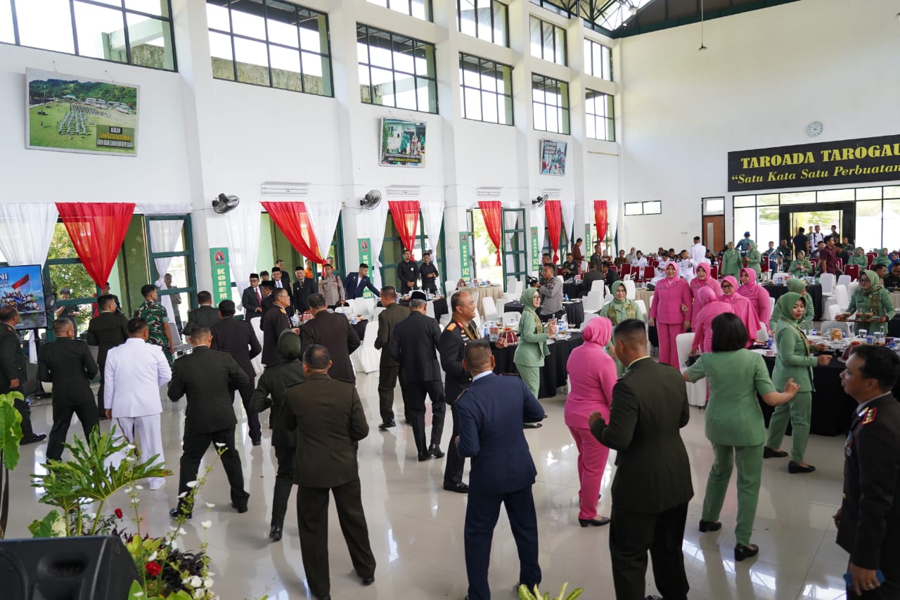 Usai mengikuti upacara yang berlangsung khidmat, Kapolda bersama para tamu undangan lainnya melanjutkan kegiatan dengan acara syukuran yang diadakan di gedung Makorem 142/Tatag.