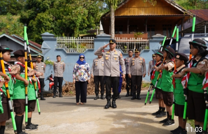 Setibanya di SDN Padang Baka, Kapolda dan rombongannya disambut dengan parade penghormatan oleh anak-anak SD yang terlihat imut dan menggemaskan. Penghormatan itu pun dibalas langsung oleh Kapolda Sulbar dengan gagah perkasa, menciptakan suasana hangat dan penuh semangat.
