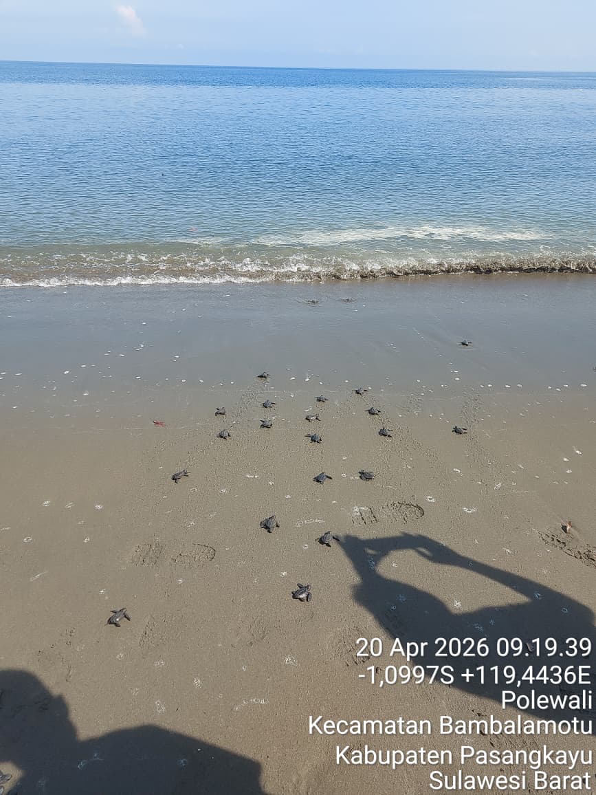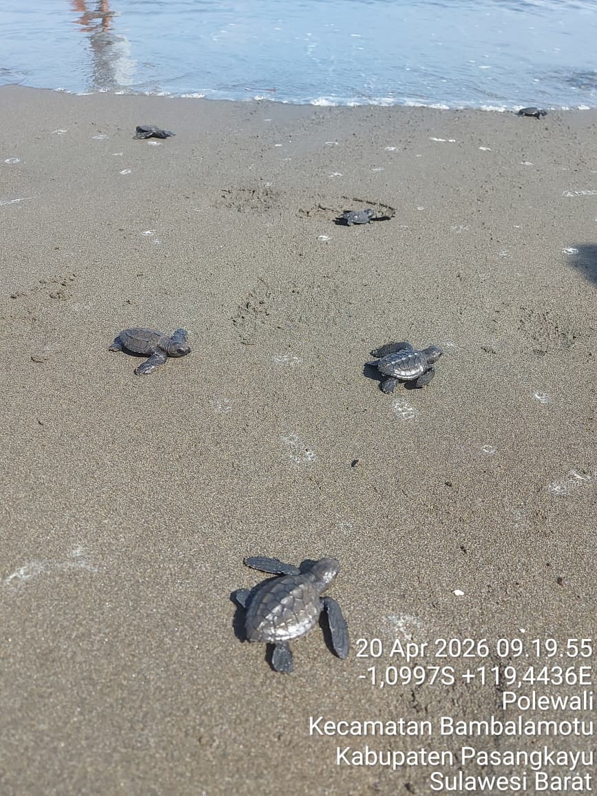 PASANGKAYU (SULBAR) – Upaya pelestarian alam dan kekayaan laut terus digalakkan. Kali ini, sebanyak 30 ekor anakan penyu laut (Tukik) yang dalam bahasa daerah setempat disebut Penyuh, berhasil ditetaskan dan dilepasliarkan kembali ke habitat aslinya di laut. Tepatnya di pinggiran pantai Kayumaloa, desa pangiang, kec.Bambalamotu, kab.pasangkayu, prov.Sulawesi barat. Senin (20/4/2026)