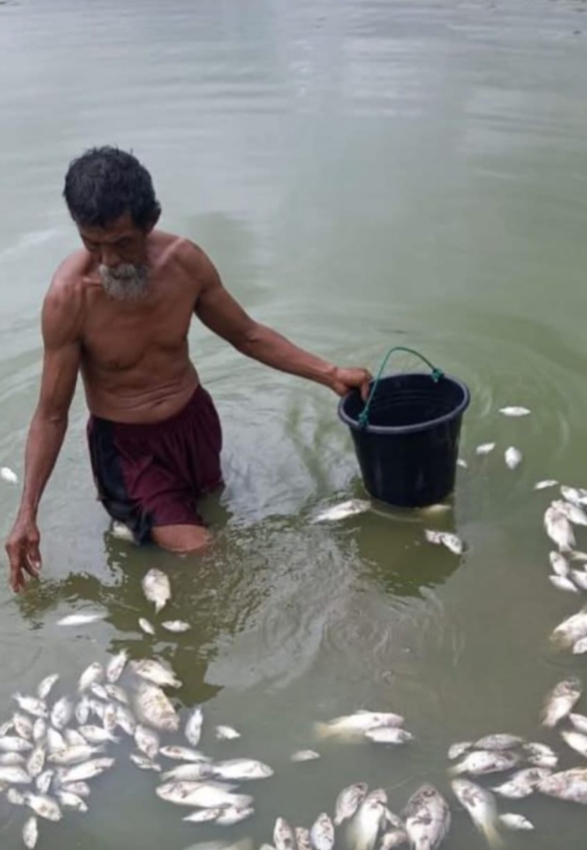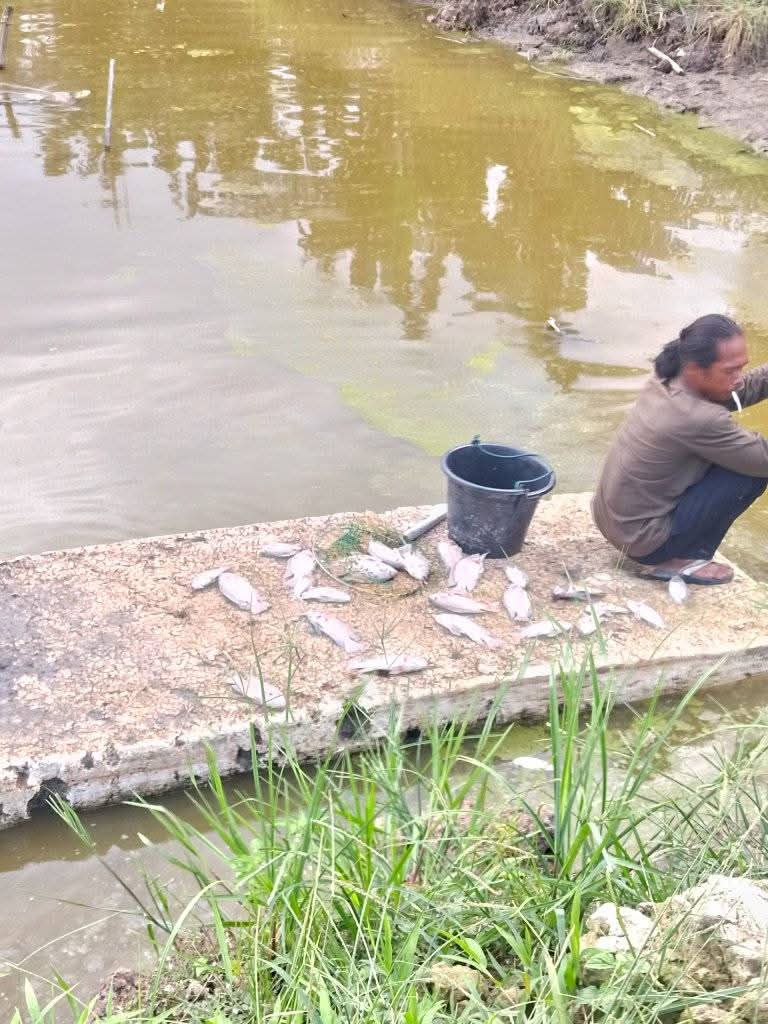 ” Ikan – ikan yang ada di dalam tambak sudah pada mati semua, ribuan ikan mati semua, itu akibat racun limbah pabrik PT.Palma, ” Ungkap Haswing.
