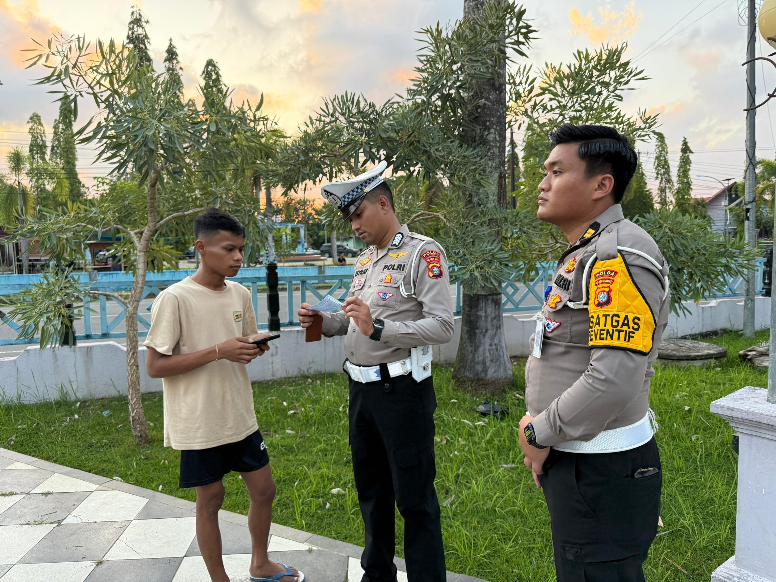 Terlihat petugas Ditlantas Polda Sulbar bertindak tegas namun tetap humanis dalam menindak para pelanggar lalu lintas, menjadi perpaduan yang efektif untuk membangun kesadaran berkendara.