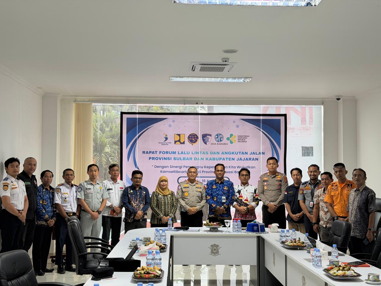 Pertemuan ini dihadiri langsung oleh para pemangku kepentingan terkait, antara lain perwakilan Dinas Perhubungan Provinsi dan Kabupaten, BPBD, Dinas PUPR, Dinas Kesehatan, BPTD, Unit Penyelenggara Pelabuhan, serta pimpinan PT Jasa Raharja Cabang Mamuju dan Organisasi Angkutan Darat (Organda).