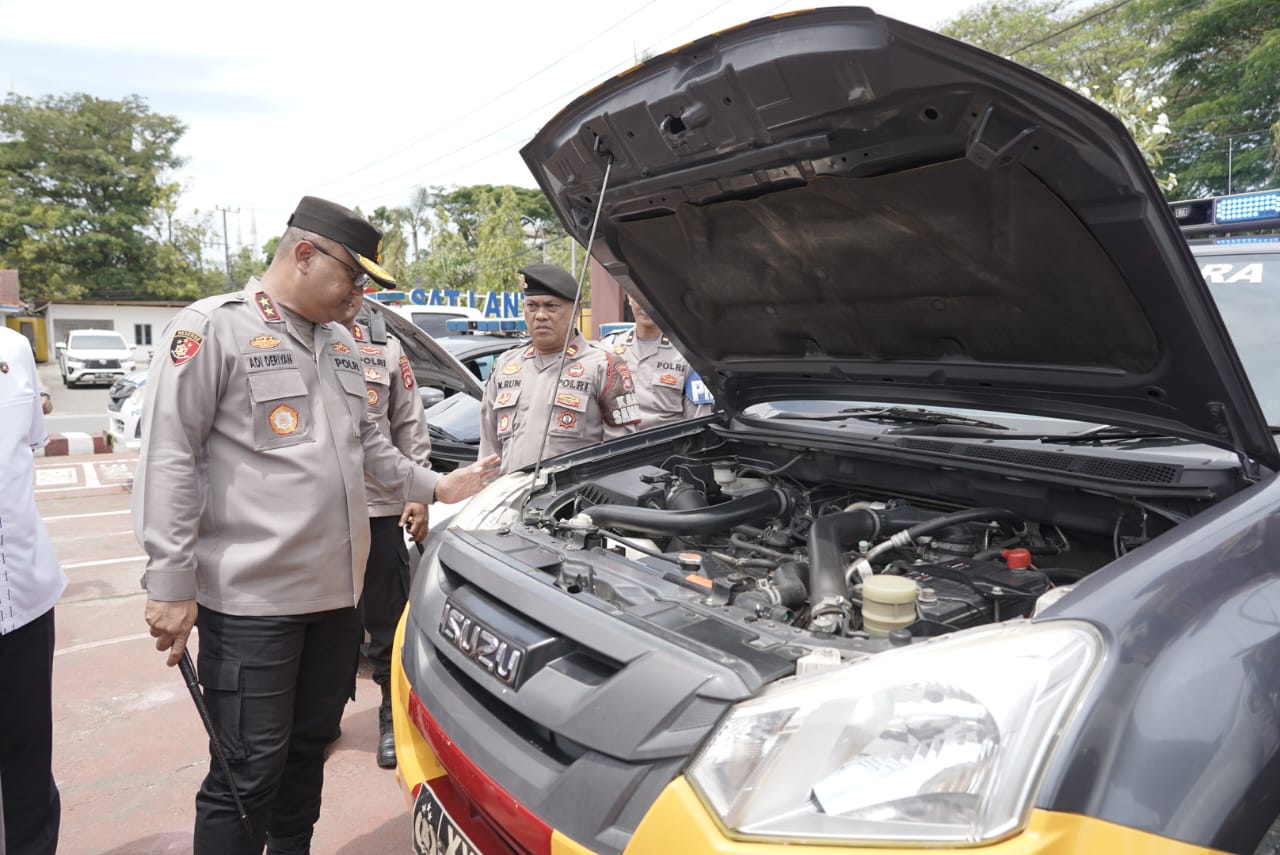 Pengecekan ini meliputi kendaraan roda dua maupun roda empat, termasuk mobil patroli, kendaraan operasional dan sepeda motor Bhabinkamtibmas, guna memastikan armada tersebut selalu dalam kondisi prima dan siap operasional 24 jam.