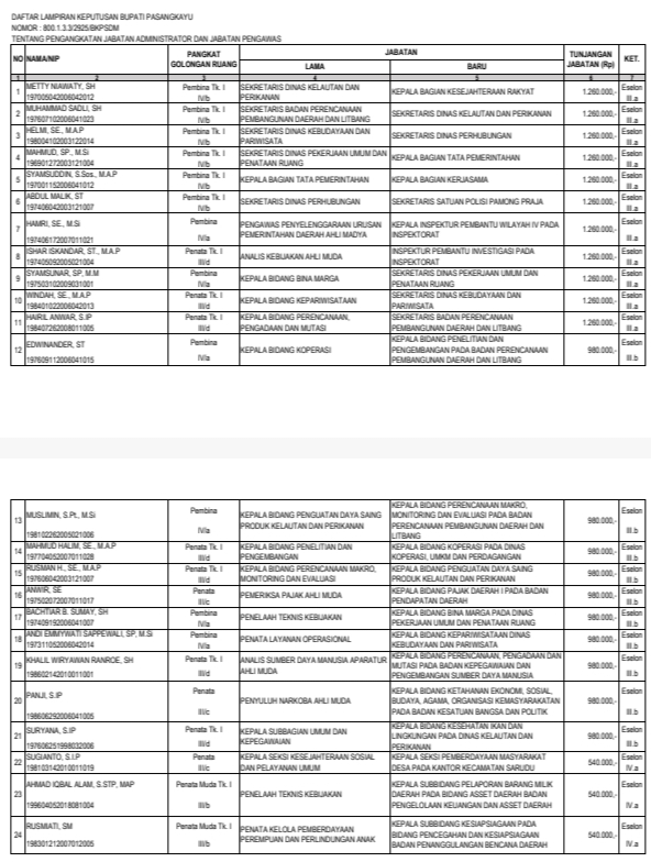 – 35 pejabat Administrator (eselon III) dan Pengawas (eselon IV)