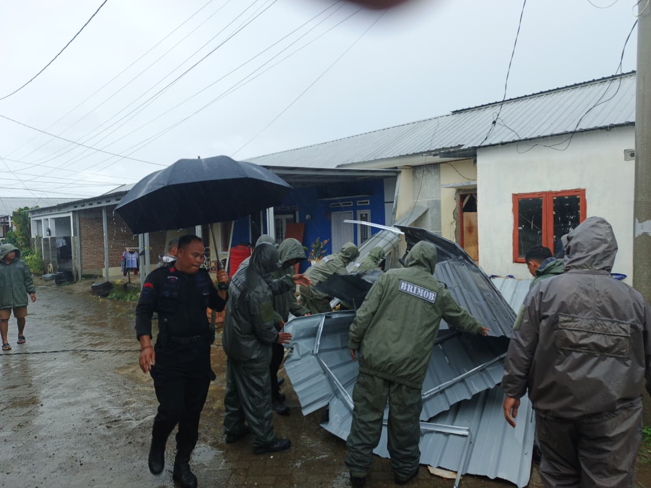 Dipimpin oleh Danki 1 Yon A Pelopor, Ipda Ilham, tim Brimob terjun langsung ke Perumahan Sarinda, salah satu lokasi yang mengalami dampak bencana. Mereka membantu mengevakuasi warga, membersihkan puing-puing reruntuhan, serta merapikan atap rumah yang roboh akibat terjangan angin.