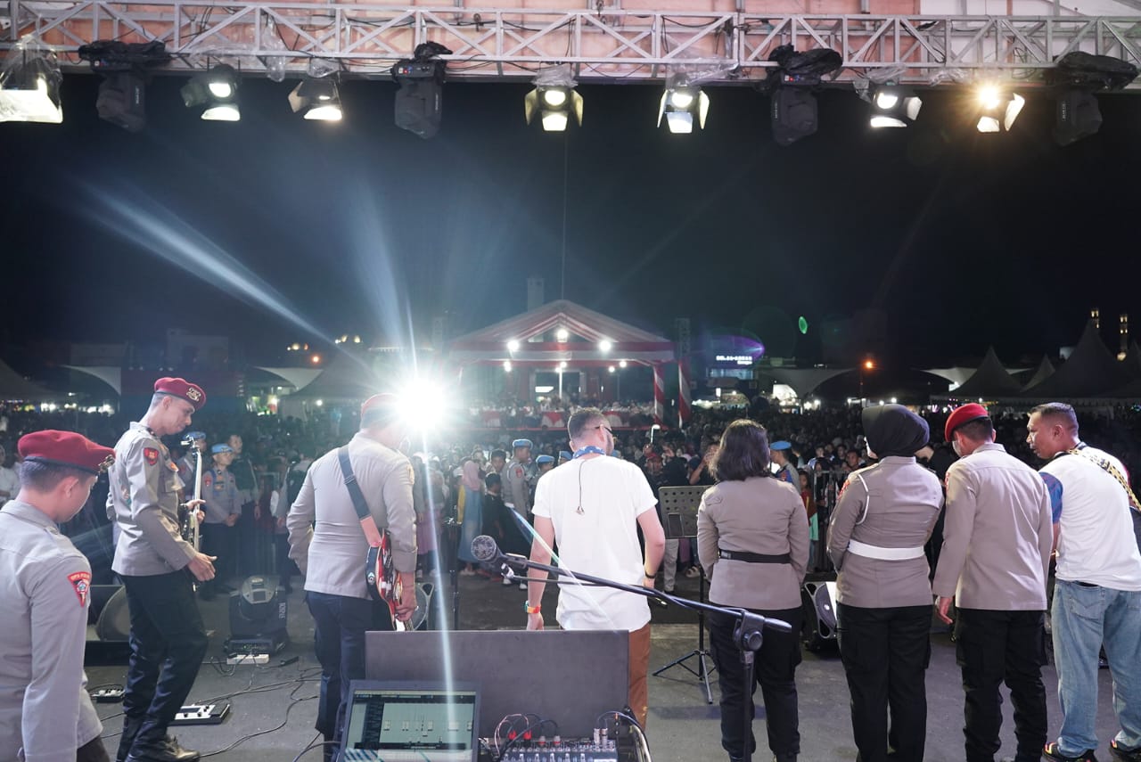 Ribuan warga Mamuju dan sekitarnya tumpah ruah memenuhi area pantai, larut dalam alunan musik dan tawa. Kapolda Sulbar, Irjen Pol. Adang Ginanjar, bersama Ketua Bhayangkari Ny. Miranti Adang, Forkopimda, dan para tamu undangan tampak menikmati setiap detik kemeriahan tersebut.