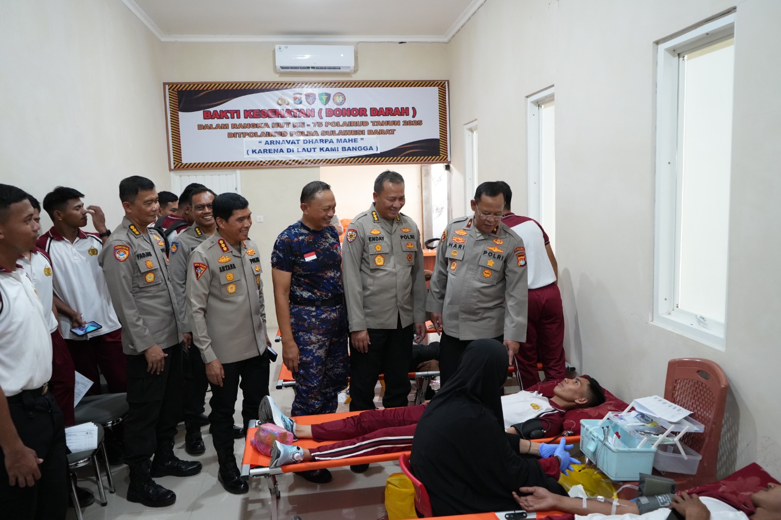 Polda Sulbar – Memperingati hari jadinya, Direktorat Polisi Perairan dan Udara (Polairud) Polda Sulawesi Barat menggelar kegiatan bakti kesehatan berupa donor darah di Aula Dokpol Rumah Sakit Bhayangkara, Mamuju, Jumat (14/11/25).