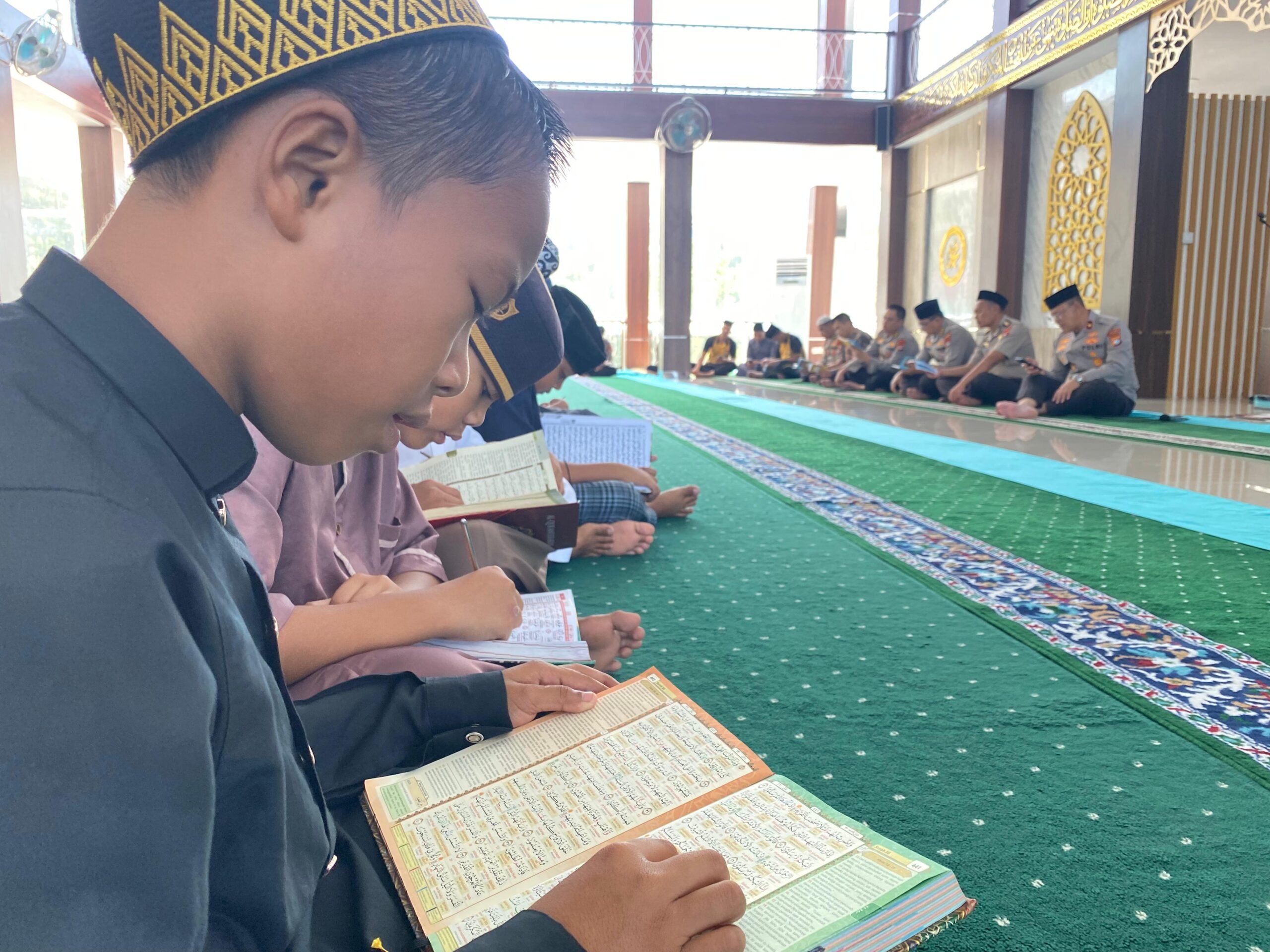 Polda Sulbar – Suara bacaan Surah Yasin yang merdu bergema di masjid Jabal Rahmah Mapolda, Jumat (25/12/2025). Kegiatan ibadah rutin jumatan ini diikuti personel Polda Sulawesi Barat bersama anak yatim, semuanya bersatu menanam doa tulus untuk kedamaian dan keamanan wilayah Sulbar di tengah meriahnya momen Natal dan tahun baru (Nataru).