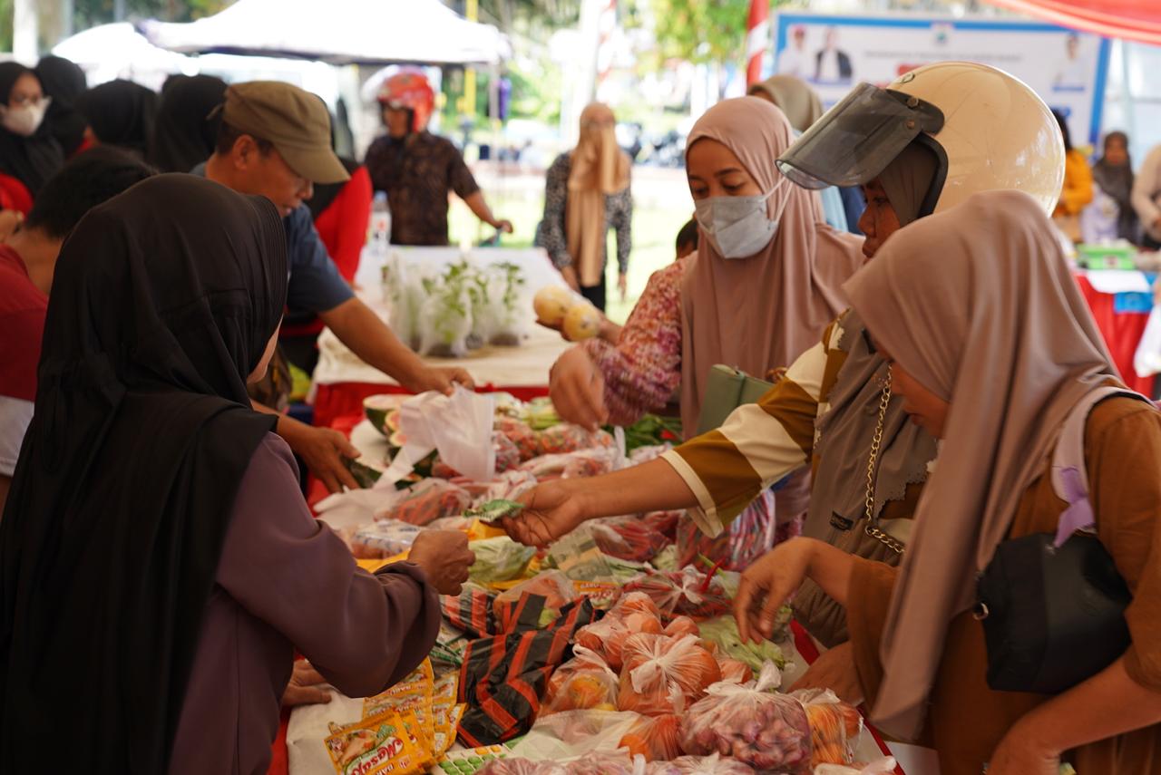 Brigjen Pol Hari Santoso terlihat aktif berinteraksi dengan para pedagang dan pembeli. Ia berkeliling memantau harga dan kualitas berbagai komoditas yang dijual, seperti beras, minyak goreng, telur, sayuran, buah-buahan dan jajanan pasar lainnya.