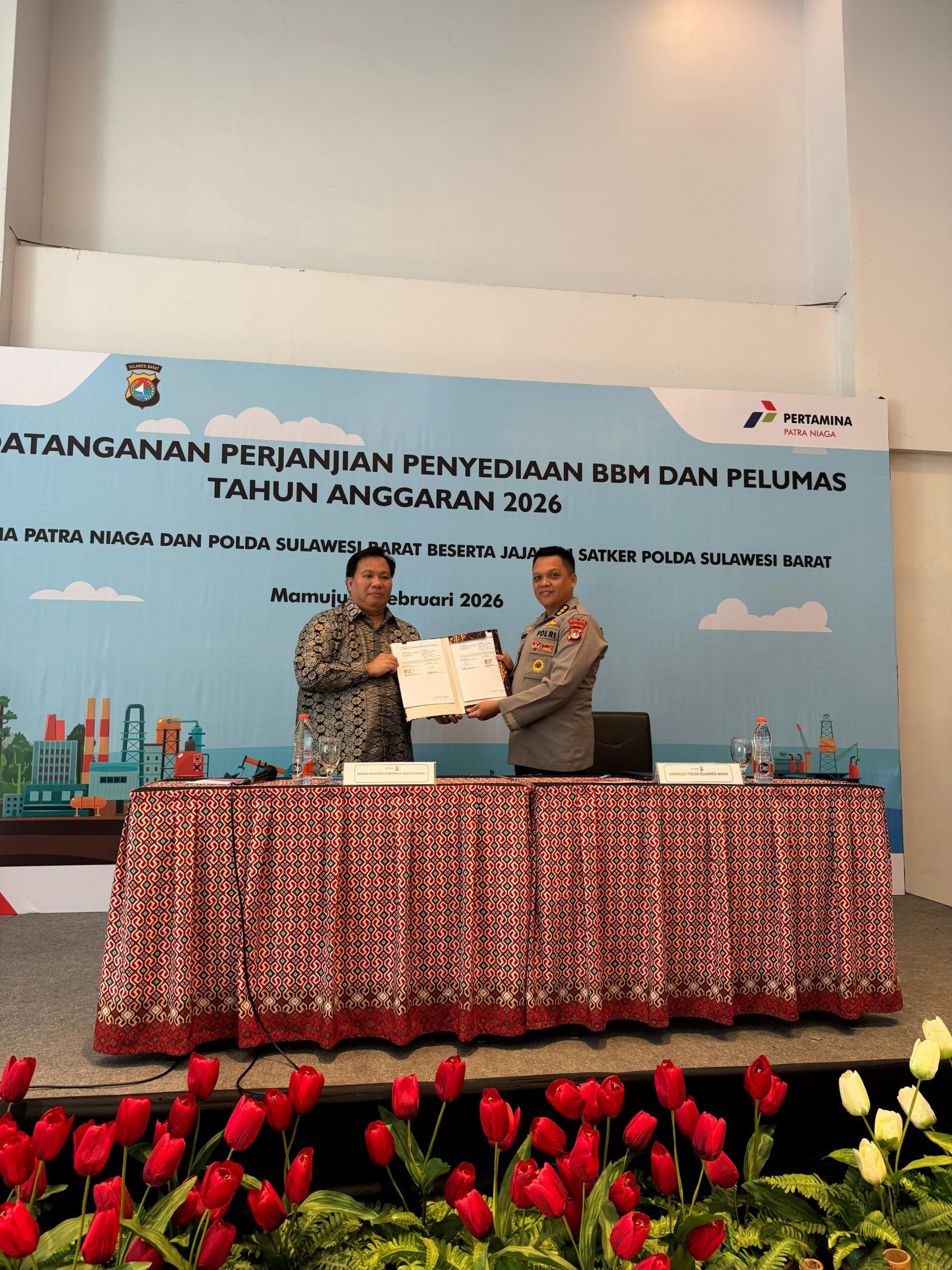 Polda Sulbar – Sinergi antara kepolisian dan badan usaha milik negara semakin diperkuat! Polda Sulawesi Barat bersama PT Pertamina Patra Niaga resmi menandatangani Perjanjian Penyediaan Bahan Bakar Minyak (BBM) Tahun Anggaran 2026, Selasa (3/2/26) di Ballroom Hotel Maleo, Mamuju.