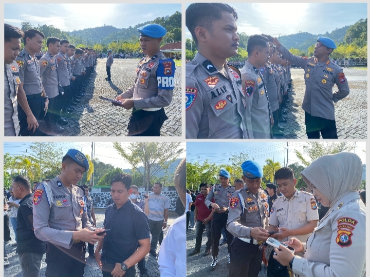 Polda Sulbar – Sebagai upaya menjaga disiplin personel, Bidpropam Polda Sulbar kembali melakukan pengecekan mendadak terhadap seluruh personel usai apel pagi rutin di lapangan Tribrata Mapolda, Selasa (10/3/26). Kegiatan ini fokus pada kelengkapan dokumen data diri dan sikap tampang personel serta pengawasan penggunaan aplikasi Judi Online (Judol).