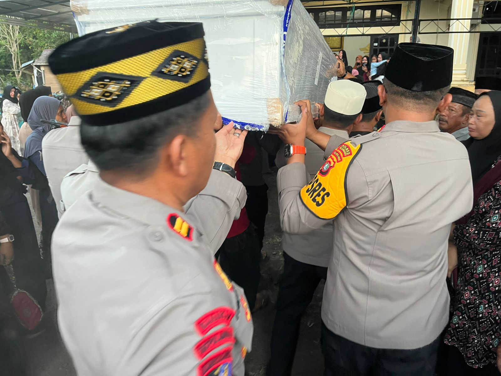 Didampingi Wakapolres Kompol Syaiful Isnaini, para Pejabat Utama, Kapolsek jajaran, perwira, dan seluruh bintara Polres Pasangkayu, iring-iringan personel mengantar jenazah dengan langkah perlahan dan penuh rasa kehilangan. Tangis keluarga pecah ketika peti jenazah diletakkan di rumah duka. Doa pun mengalun lirih, membasahi malam dengan keikhlasan.