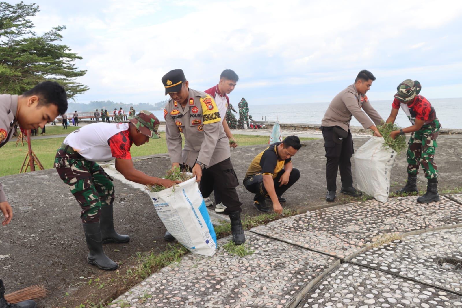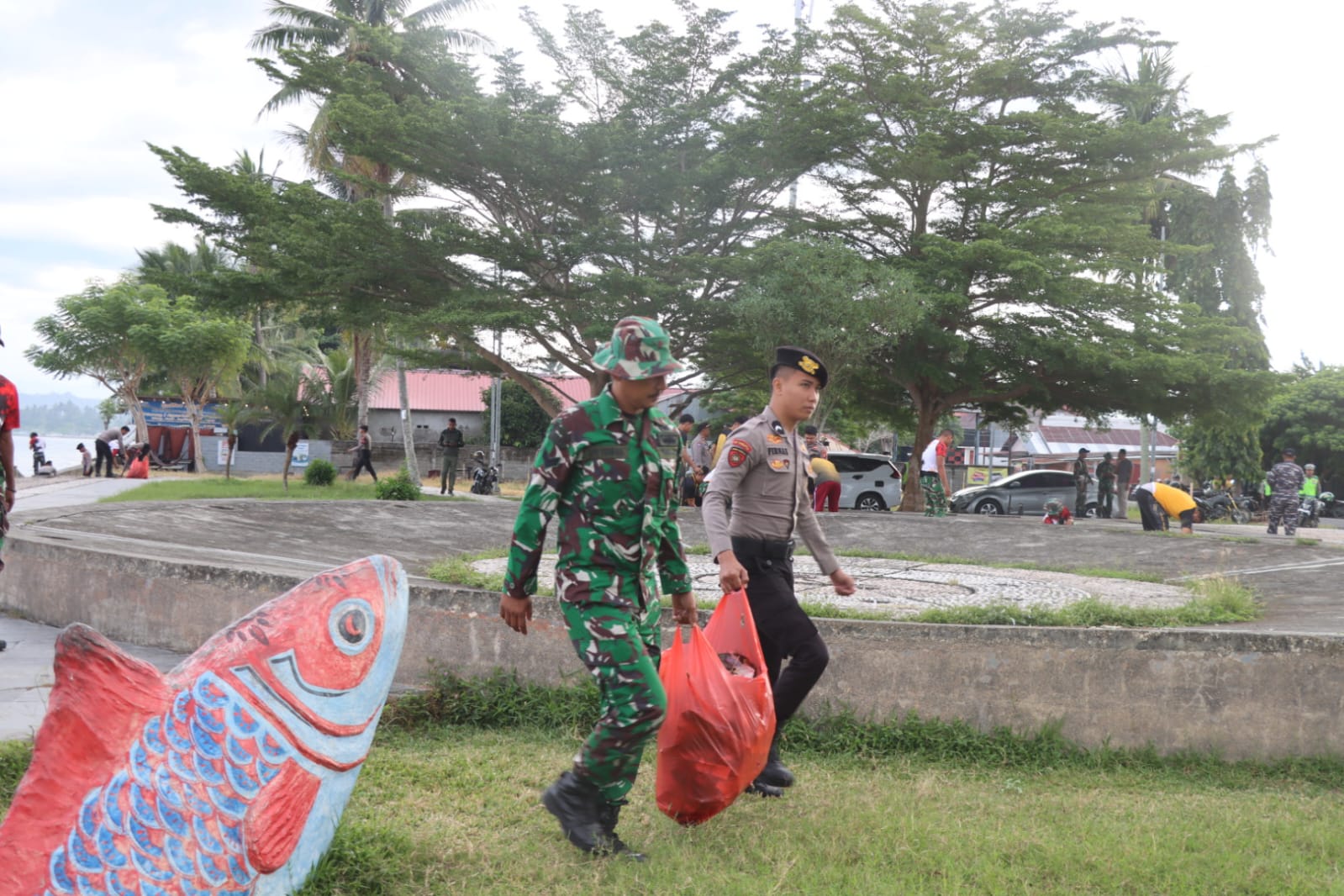 Polres Pasangkayu – Dalam rangka menumbuhkan kepedulian terhadap kebersihan lingkungan serta mempererat sinergitas lintas sektor, Polres Pasangkayu bersama TNI, Forkopimda dan para siswa melaksanakan kegiatan gotong royong kerja bakti membersihkan Pantai Anjungan Pasangkayu, Jumat (6/2/2026) pagi pukul 07.00 WITA.