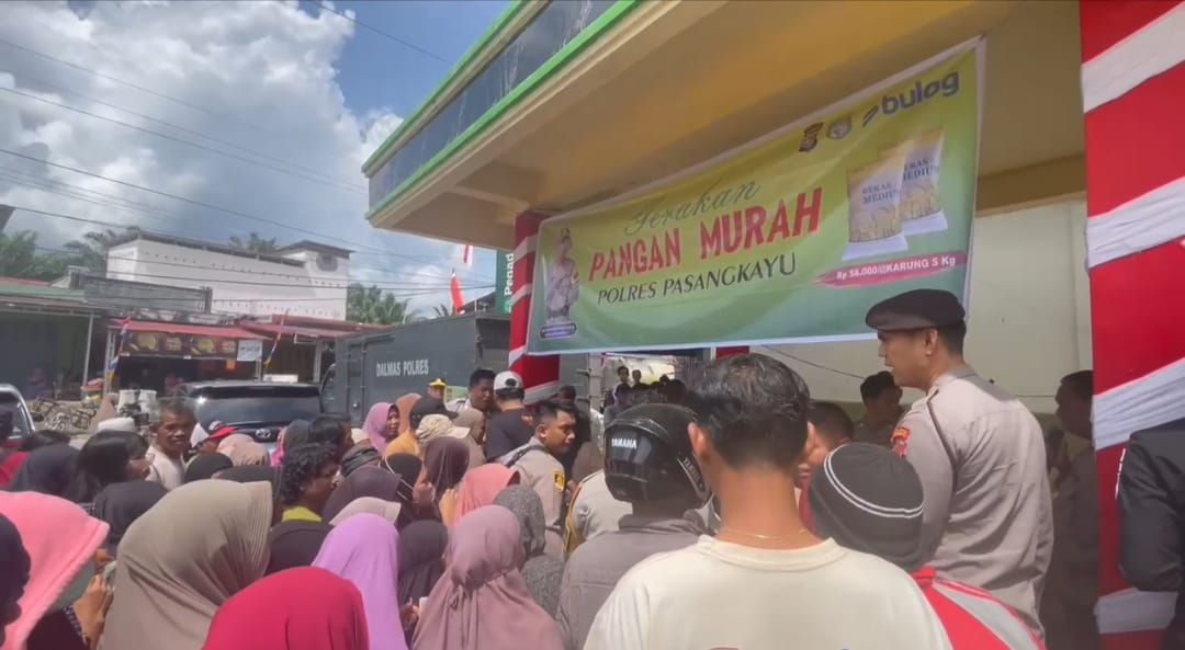 Polres Pasangkayu – Kamis (14/08/2025) sekitar pukul 10.40 WITA, halaman Masjid Dusun Mekar, Desa Tikke, Kecamatan Tikke Raya, dipadati ratusan warga yang antusias mengikuti Gerakan Pangan Murah yang digelar Polres Pasangkayu melalui Polsek Pasangkayu.