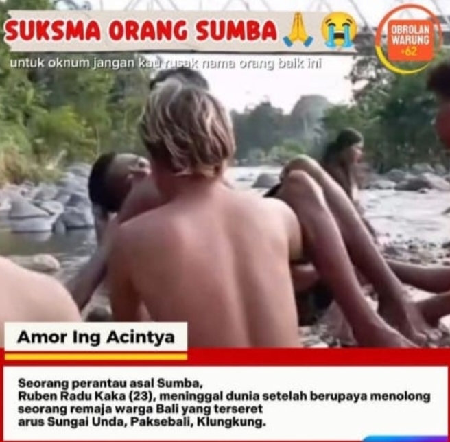 KLUNGKUNG BALI – Peristiwa tragis terjadi di Kali Unda, Kabupaten Klungkung, Bali, pada Minggu, 21 Desember 2025. Seorang pria bernama Ruben, seorang perantau asal Desa Kawango, Kecamatan Kodi Utara, Kabupaten Sumba Barat Daya, Provinsi Nusa Tenggara Timur (NTT), dilaporkan meninggal dunia setelah tenggelam saat berupaya menolong warga lokal Bali yang hampir hanyut terbawa arus sungai.
